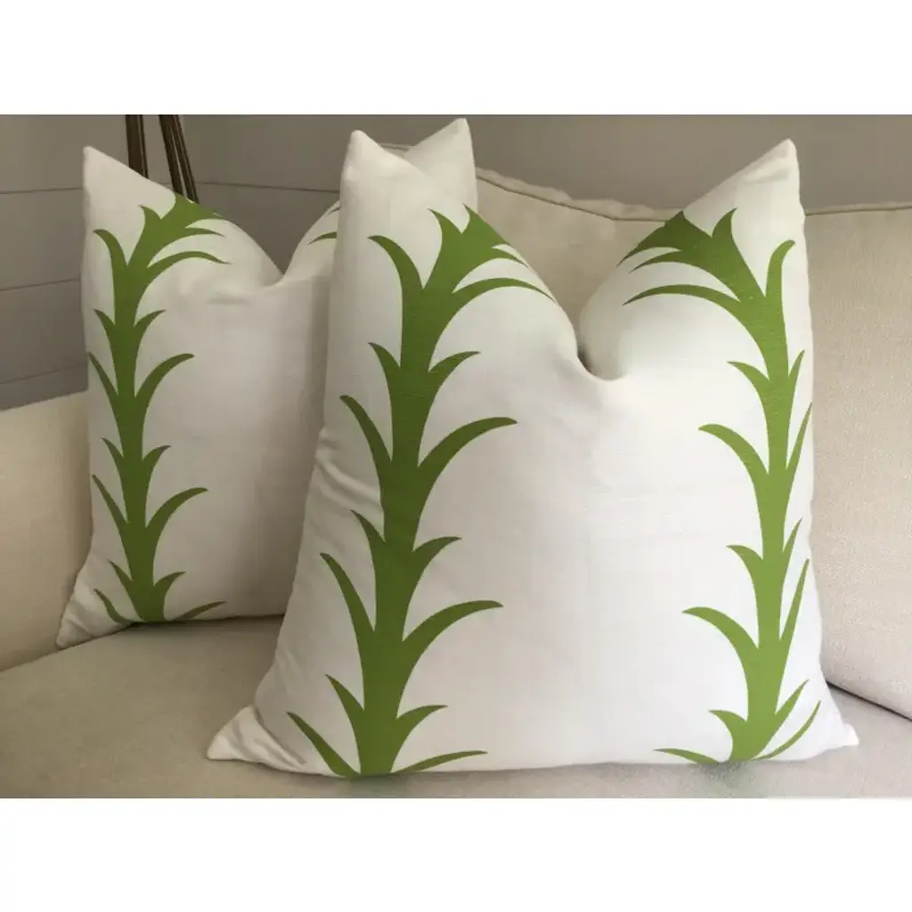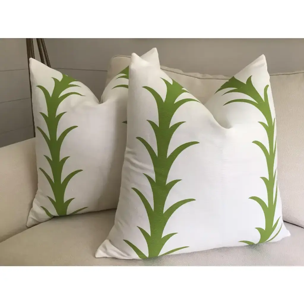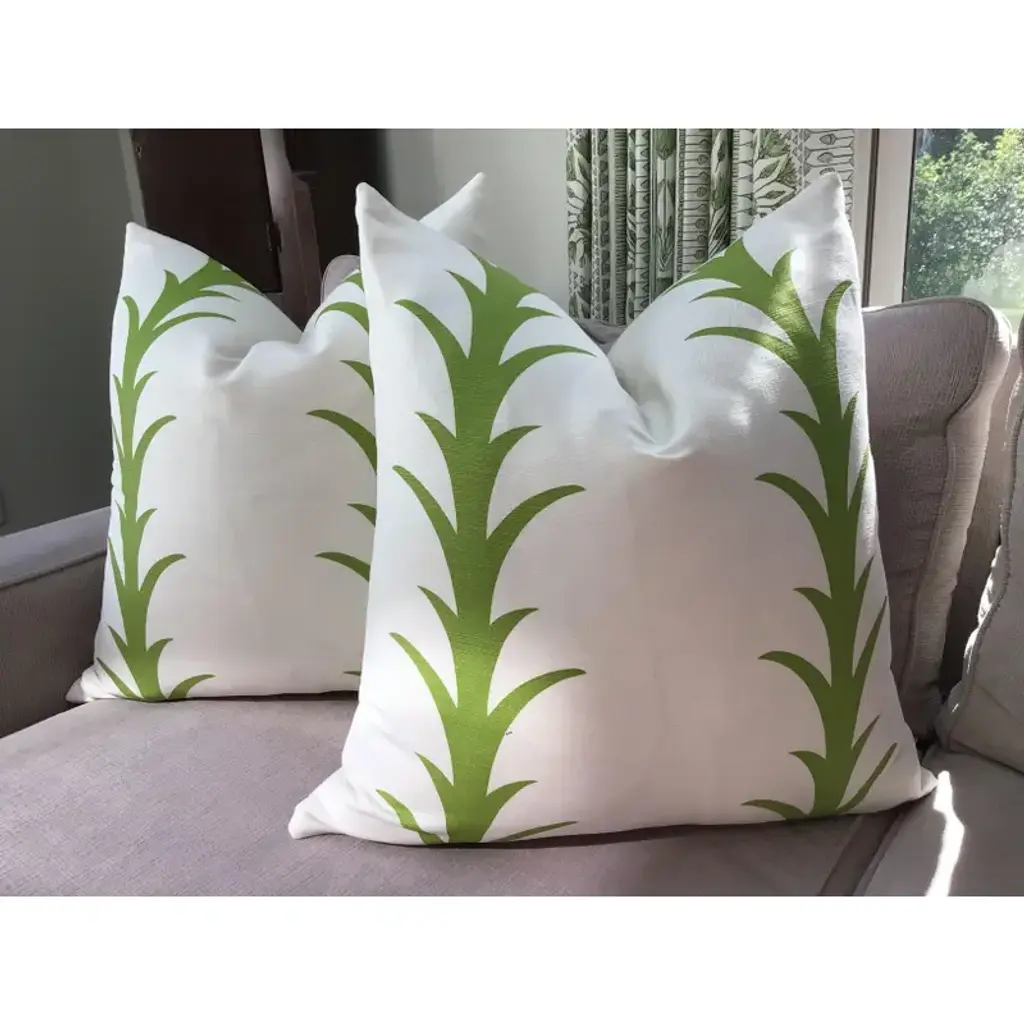 Schumacher “Acanthus” In Leaf Green 18" Double-Sided Down Filled Pillows - A Pair