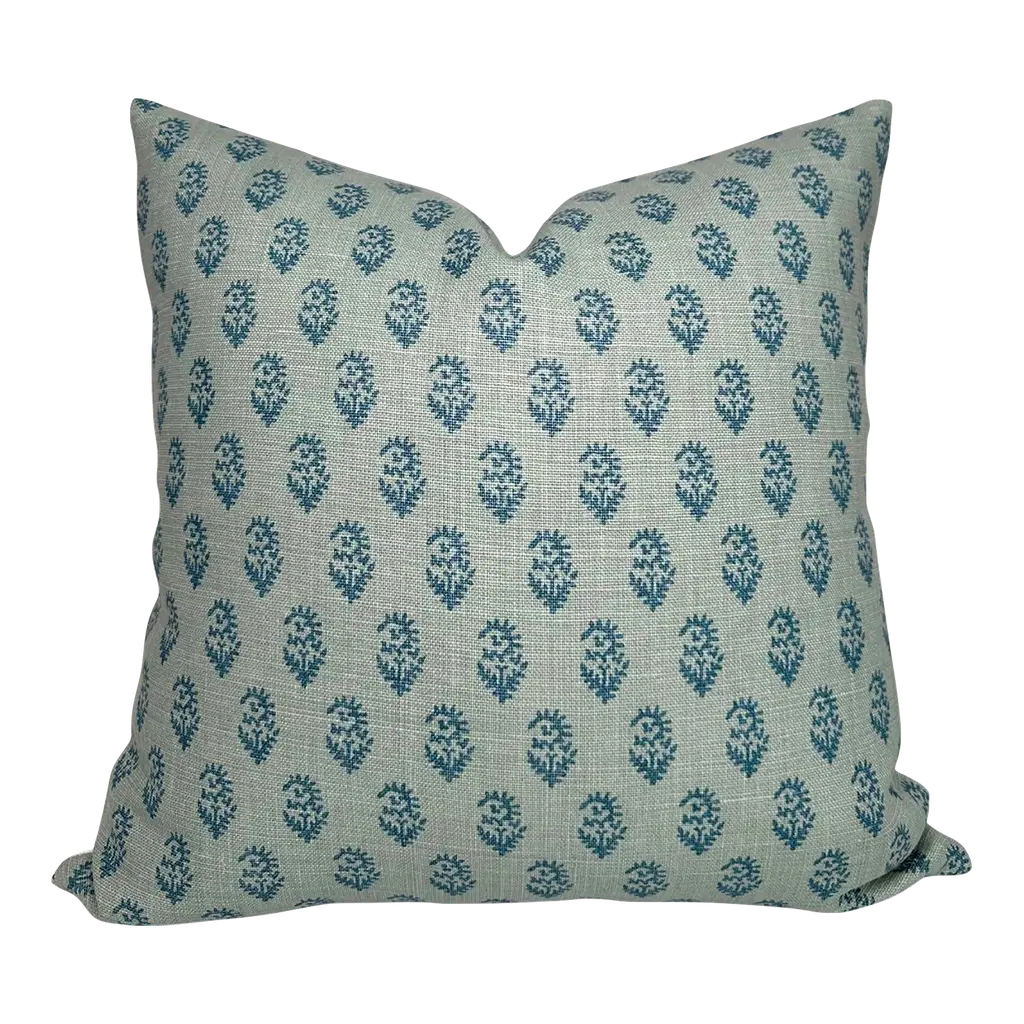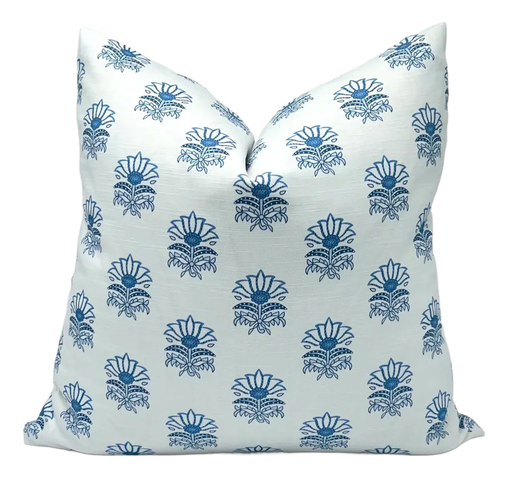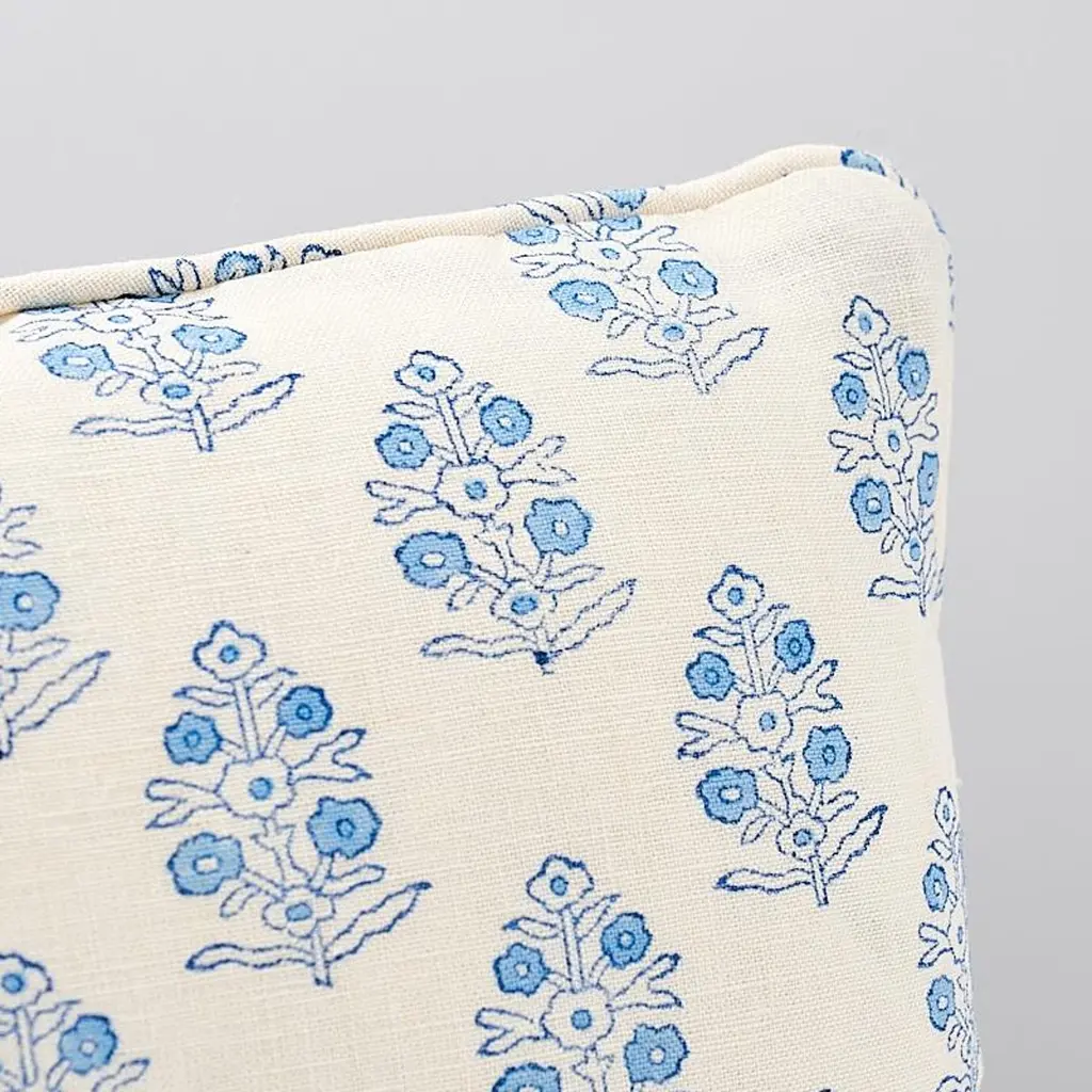 This pillow features Aditi Block Print with a self welt finish. Petite bunches of stylized flowers are meticulously block printed by hand on a soft linen ground, giving each bouquet subtle variations and an artisanal touch. Pillow includes a feather/down insert.If out of stock, lead-time is 15-20 business days approximately.