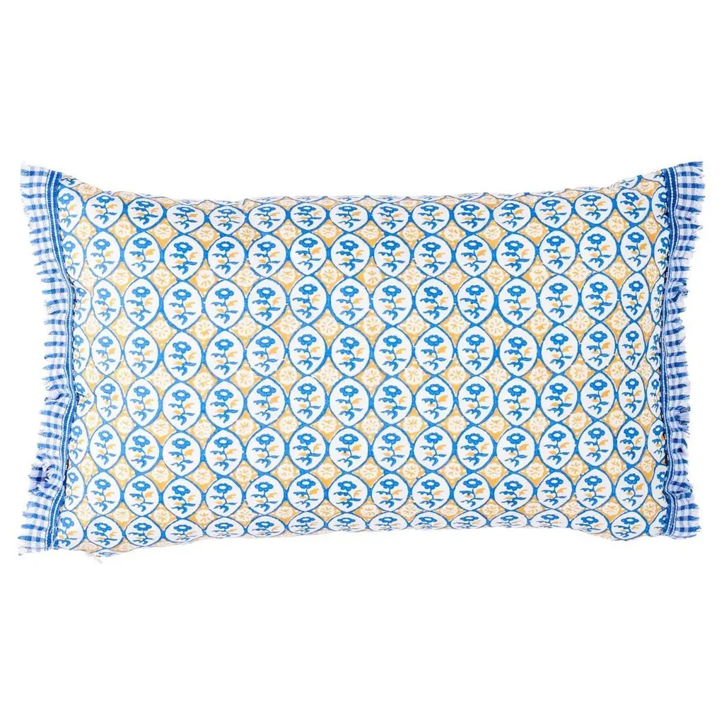 Schumacher Aditi Block Print 18" X 12" Pillow In Sky