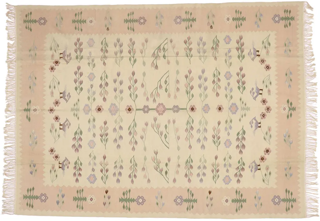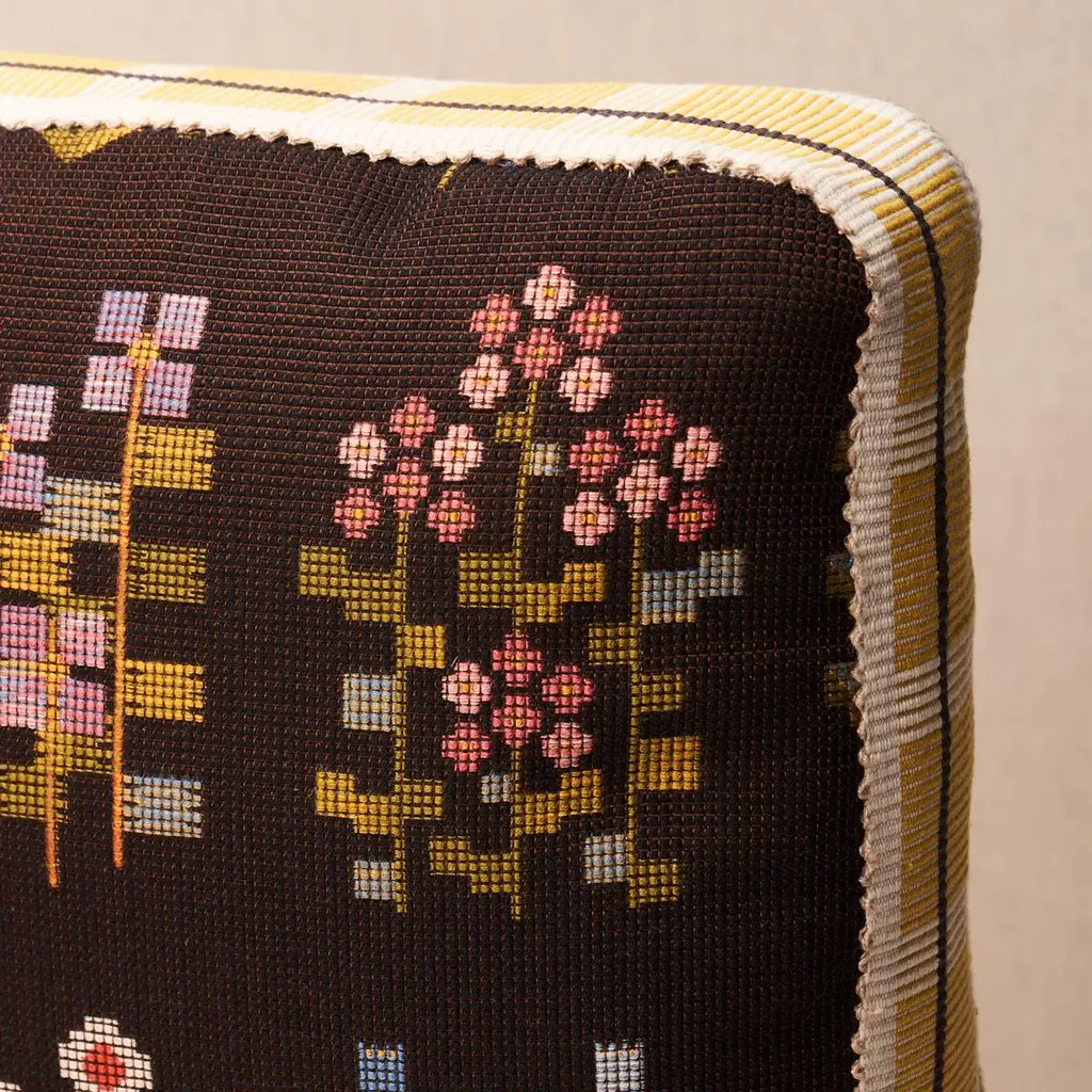 This pillow features Annika Floral Tapestry with a box edge finish. Based on original artwork that was hand-drawn in our studio, Annika Floral Tapestry in multi-on-cocoa derives its charm and geometric simplicity from early 20th-century Swedish textiles and cross-stitch samplers. A sturdy tapestry weave gives this mid-scale floral fabric the look of needlepoint, along with a wonderful hand. Pillow is finished with a box edge in Calcada Tape. Tape contents: 65% cotton and 35% linen. Pillow includes a feather/down fill insert and hidden zipper closure.