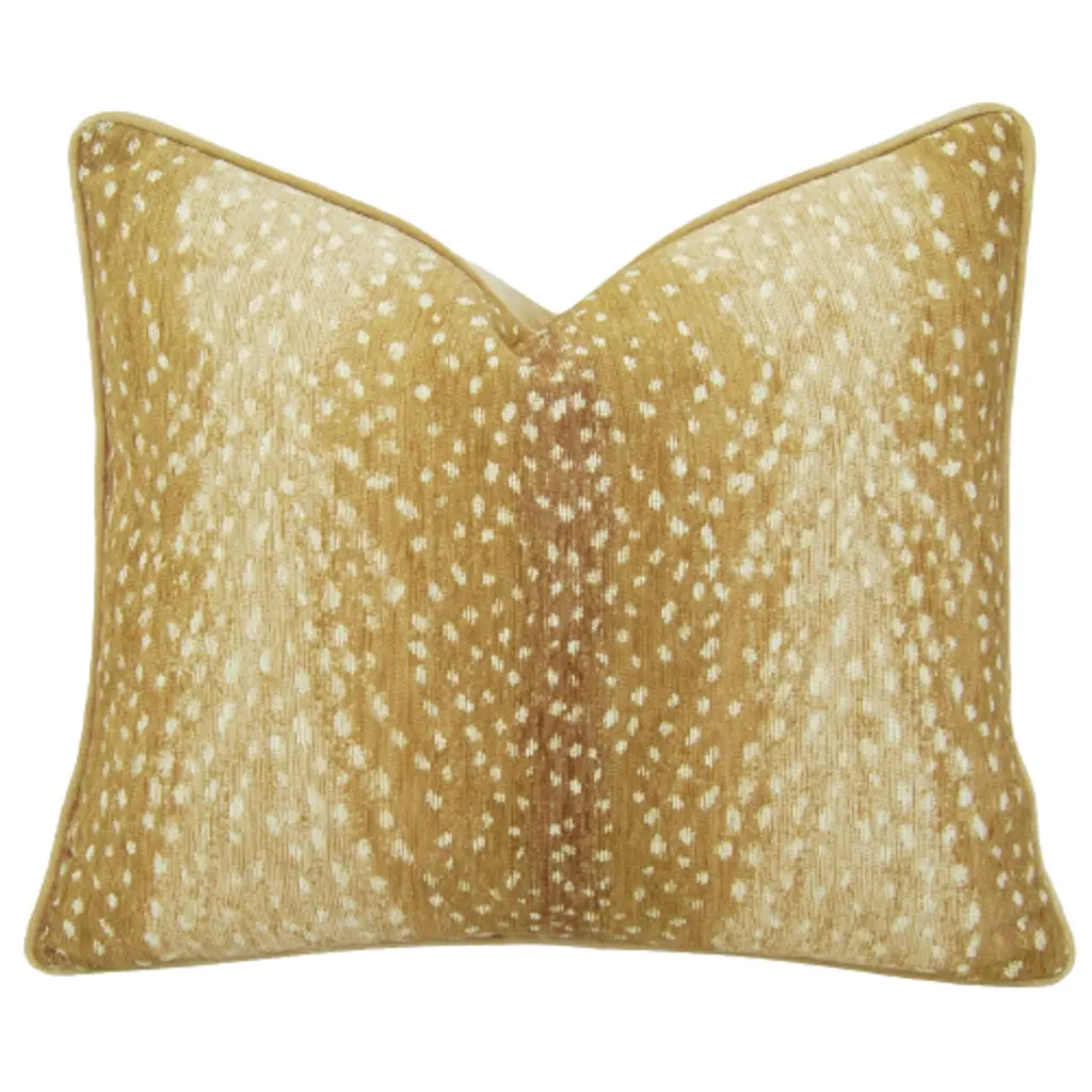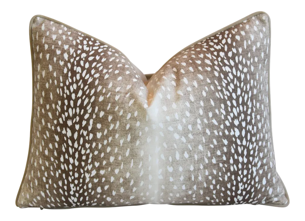 This pillow features Axis Velvet with a knife edge finish. The beautiful patterning of dots on this unusual animal print is modeled on a diminutive deer native to India. The linen and cotton blend and the slight irregularity of the weave combine to give this velvet a casual, natural charm befitting its rather timid namesake. Pillow includes a feather/down fill insert and hidden zipper closure.If out of stock, lead-time is 15-20 business days approximately. Since Schumacher was founded in 1889, our family-owned company has been synonymous with style, taste, and innovation. A passion for luxury and an unwavering commitment to beauty are woven into everything we do.