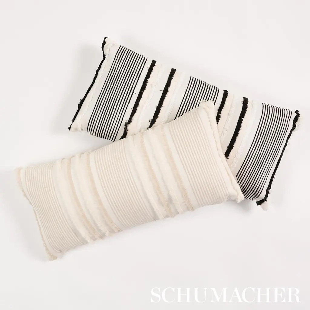This pillow features Billy Indoor/Outdoor with a knife edge finish. A stunning combination of cut fringe and skinny pencil stripes, Billy Indoor/Outdoor in black is an elegant textural tonal stripe with a remarkably soft drape and luxurious hand. Pillow includes a polyfill insert and hidden zipper closure.If out of stock, lead-time is 15-20 business days approximately.Since Schumacher was founded in 1889, our family-owned company has been synonymous with style, taste, and innovation. A passion for luxury and an unwavering commitment to beauty are woven into everything we do.