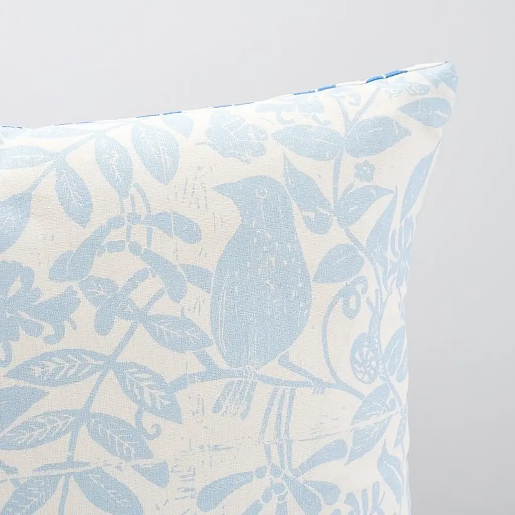 This pillow features features Bird & Bee on front with Fern on back, both by Molly Mahon for Schumacher, with a knife edge finish. Flora and fauna entwine in this charming, graphic allover pattern by English printmaker Molly Mahon. Pillow includes a feather/down fill insert and hidden zipper closure. Features our Fabrics, Style# 179212, Bird & Bee (Front) and Style# 179153, Fern (Back). If out of stock, lead-time is 15-20 business days approximately.