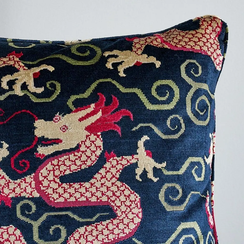 This pillow features Bixi Velvet with a Self-Welt finish. Inspired by chinoiserie motifs, this fabulous, fantastical dragon pattern was dreamt up by our in-house design studio. Dense pile and loop accents create a rich, textural allure. Pillow includes a feather/down fill insert and hidden zipper closure.If out of stock, lead-time is 15-20 business days approximately. Since Schumacher was founded in 1889, our family-owned company has been synonymous with style, taste, and innovation. A passion for luxury and an unwavering commitment to beauty are woven into everything we do.