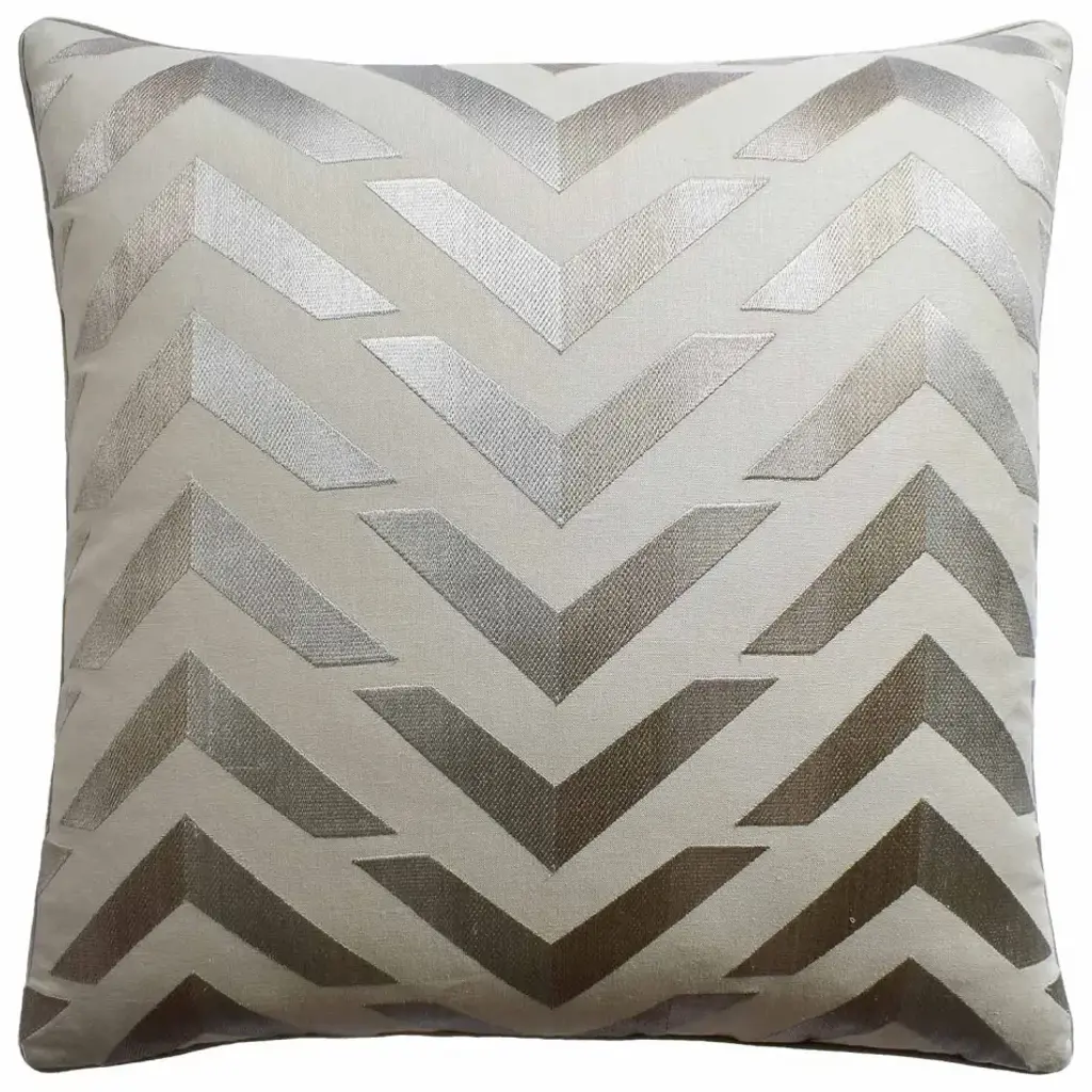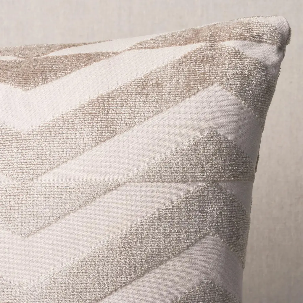 Schumacher Broken Chevron Cut Velvet 22" Pillow In Tapue On Ivory