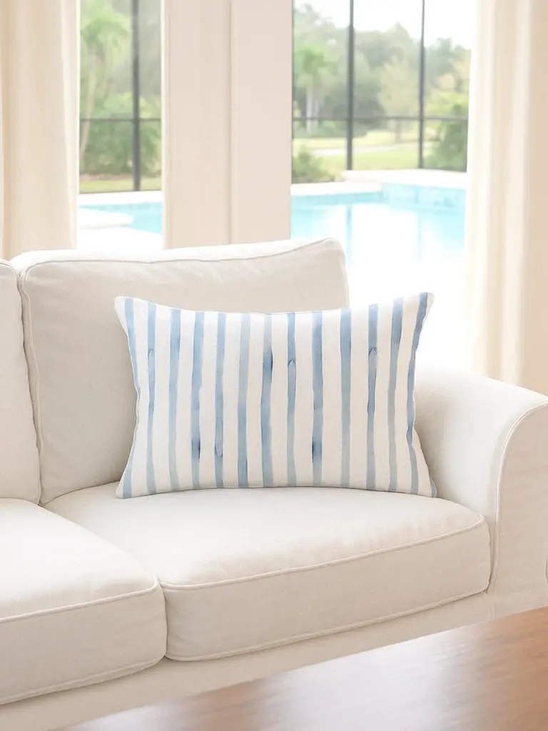 This pillow features Brushstrokes with a knife edge finish. A stylized stripe made of gestural, horizontal brushstokes, this print has a hand-painted look and a modern vibe. Pillow includes a feather/down fill insert and hidden zipper closure.If out of stock, lead-time is 15-20 business days approximately. Since Schumacher was founded in 1889, our family-owned company has been synonymous with style, taste, and innovation. A passion for luxury and an unwavering commitment to beauty are woven into everything we do.