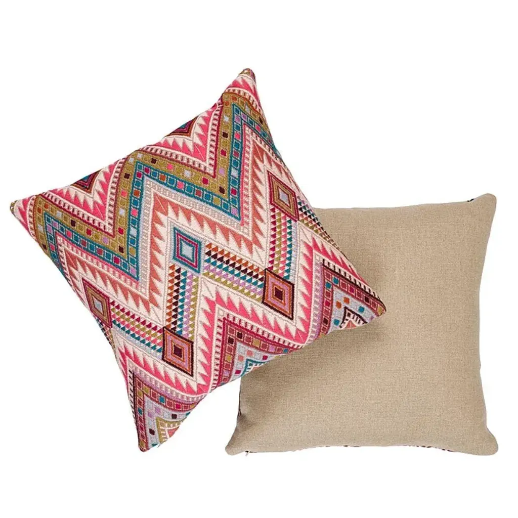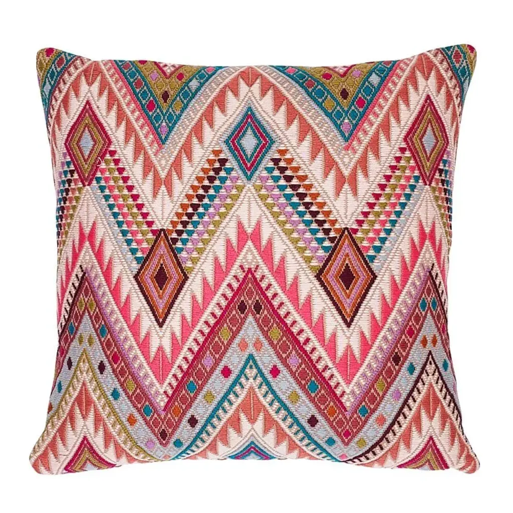 This pillow features Coyolate Fabric with a knife-edge finish. This extraordinary 39”-long brocade panel is hand-woven and -embroidered on a backstrap loom by master Maya women weavers in Guatemala. The panel is cut to create 2 unique pillow faces. The back of the pillow is Piet Performance Linen. Pillow includes a feather/down fill insert and hidden zipper closure. Content: 50% Cotton, 50% Linen Made with our Coyolate Hand Woven Fabric, Item# 79241.
