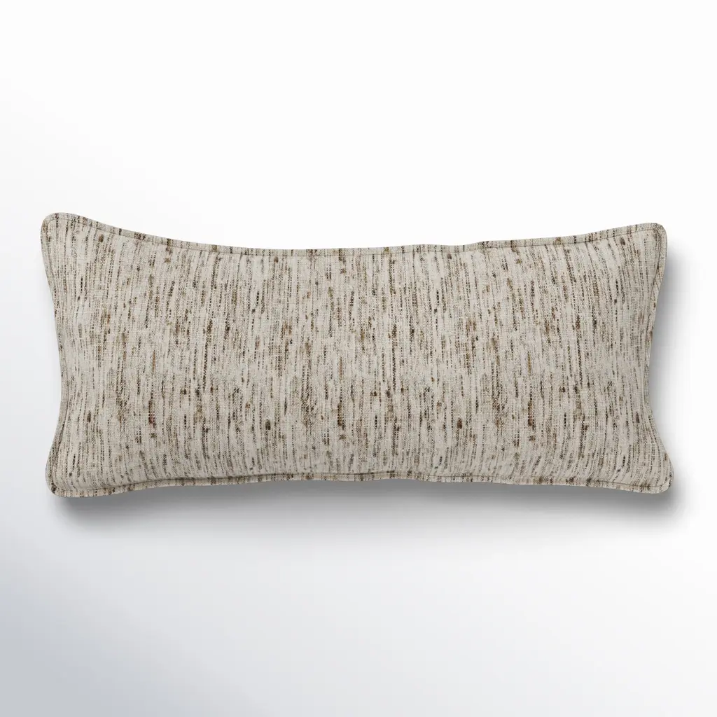 This pillow features Gibson (item# 72550, Gibson Fabric) with a knife edge finish. Super soft chenille yarns form an irregular, abstracted pattern on a contrasting ground. Pillow includes a feather/down fill insert and hidden zipper closure. If out of stock, lead-time is 15-20 business days approximately.