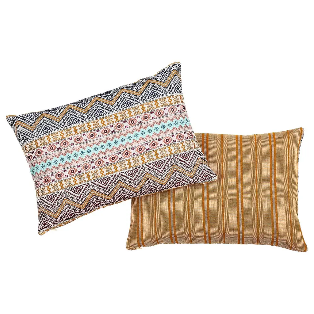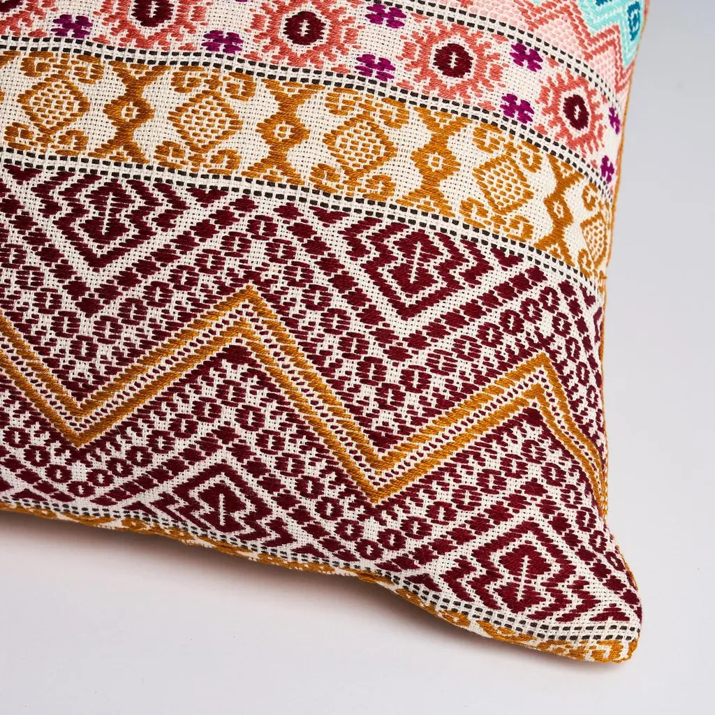 This pillow features Holmul by A Rum Fellow for Schumacher with a knife edge finish. A dazzling multicolored pattern, ethically handwoven in Guatemala with a centuries-old, treadle-loom technique. The artisanal nature of this textile gives it a warmth, tactility and character that sets it apart from machine-made goods. Back of pillow is Panan handwoven Stripe. Pillow includes a feather/down fill insert and hidden zipper closure. If out of stock, lead-time is 15-20 business days approximately. Since Schumacher was founded in 1889, our family-owned company has been synonymous with style, taste, and innovation. A passion for luxury and an unwavering commitment to beauty are woven into everything we do.