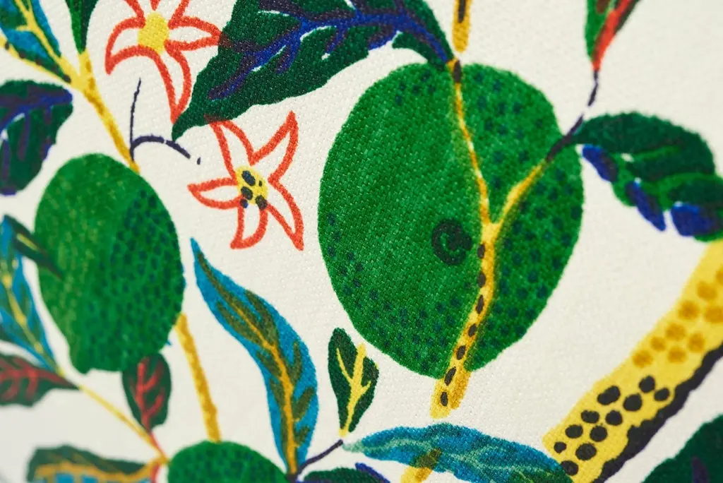 This archival Josef Frank print, created in 1947, bears the signature whimsy, color and personality for which the designer is known. The hand-drawn pattern has inimitable charm. Now featured as a stunning decorative accent, in Primary, this is sure to enhance and elevate any interior or setting! If out of stock, lead-time is 15-20 business days approximately. Pillows and accessories Product Detail Pattern name: Citrus Garden Color: Primary Fully wrapped (pattern on both sides) Zipper closure Knife edge Feather/down fill insert included Material: 100% linen Pillow measures 18". Sold individually.
