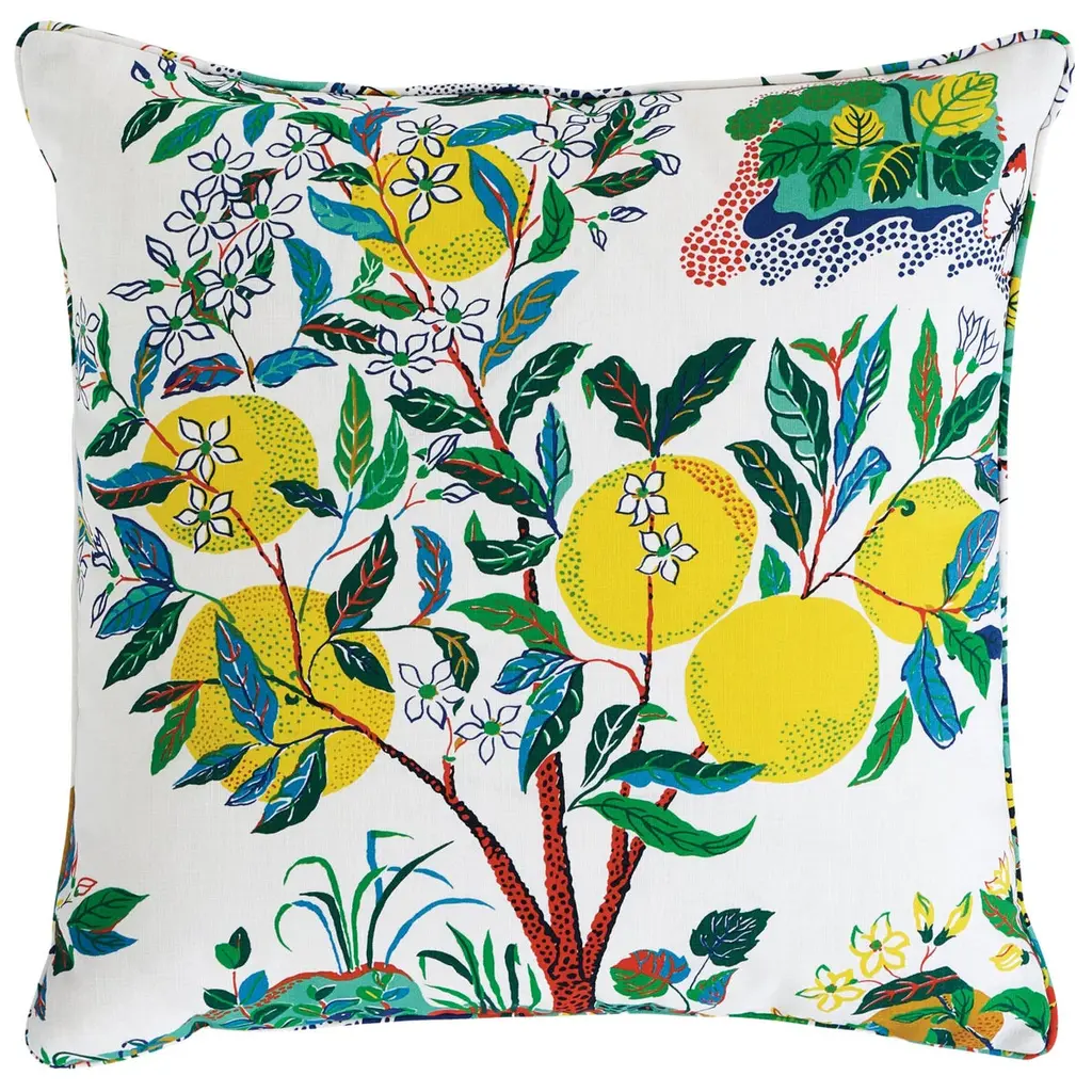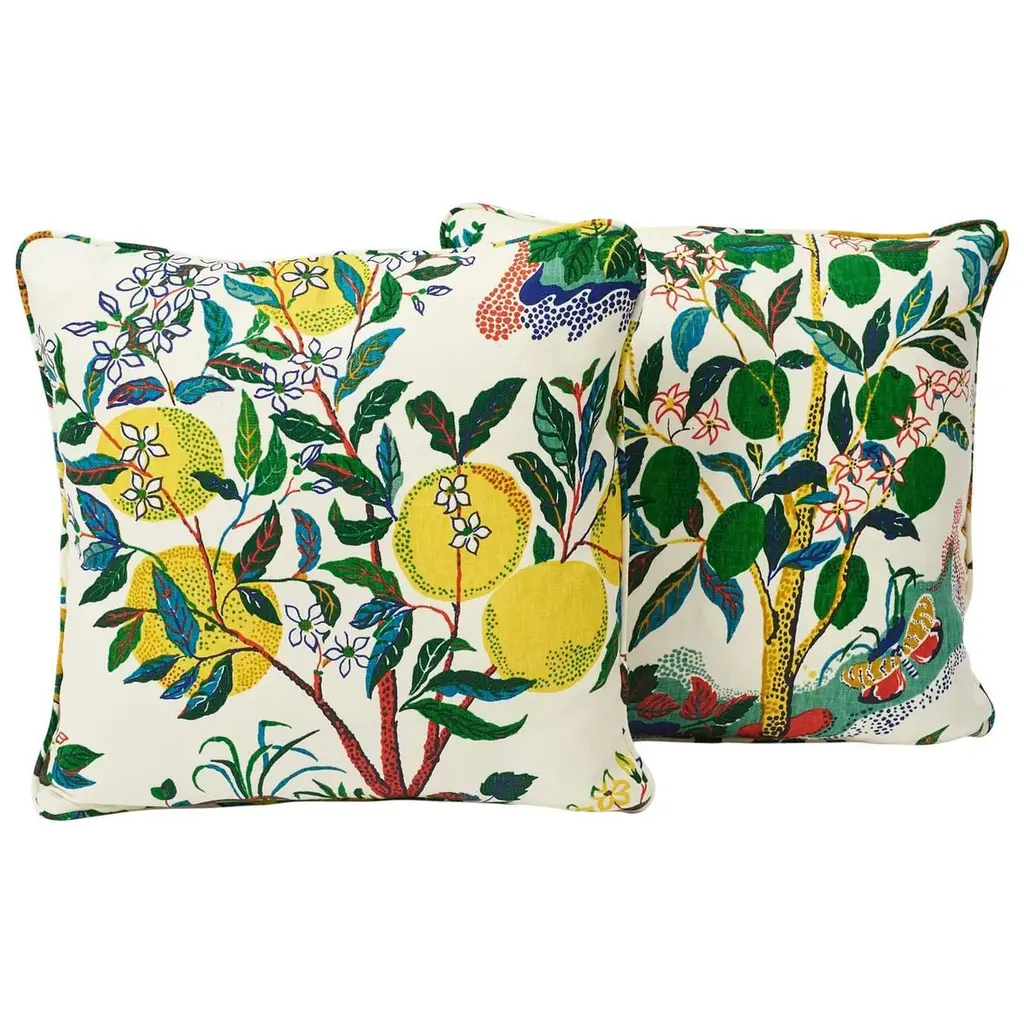 Schumacher Josef Frank Citrus Garden Primary Color Linen Two-Sided Pillow