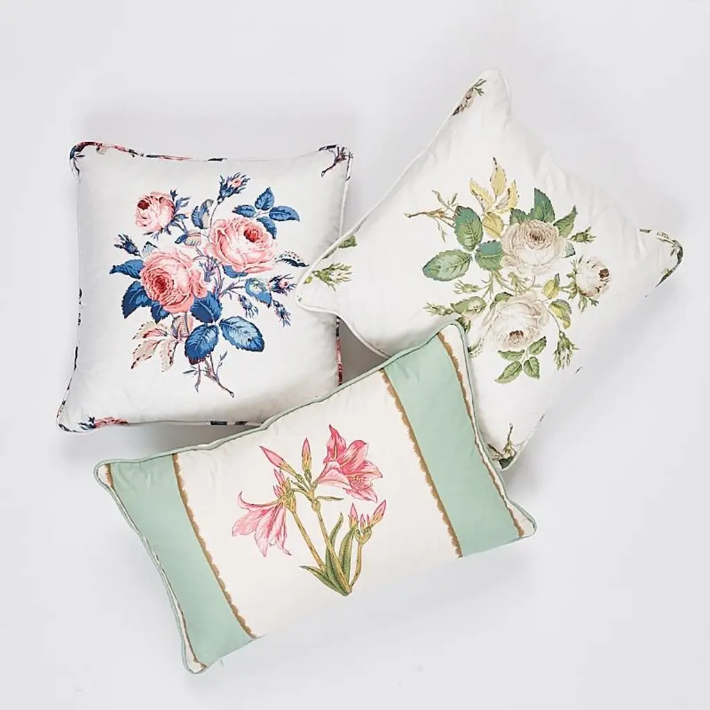This pillow features Loudon Rose Fabric (Item# 179630) with a self welt finish. A romantic, painterly quality infuses this rose bouquet with an unmistakably feminine beauty. The blooms are wonderfully detailed yet the petals and leaves display a lovely looseness. Pillow includes a feather/down fill insert and hidden zipper closure. If out of stock, lead-time is 15-20 business days approximately.
