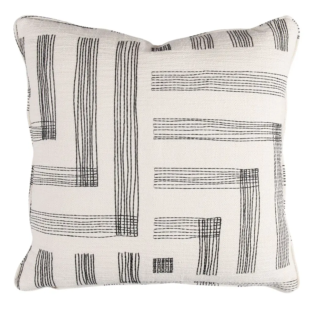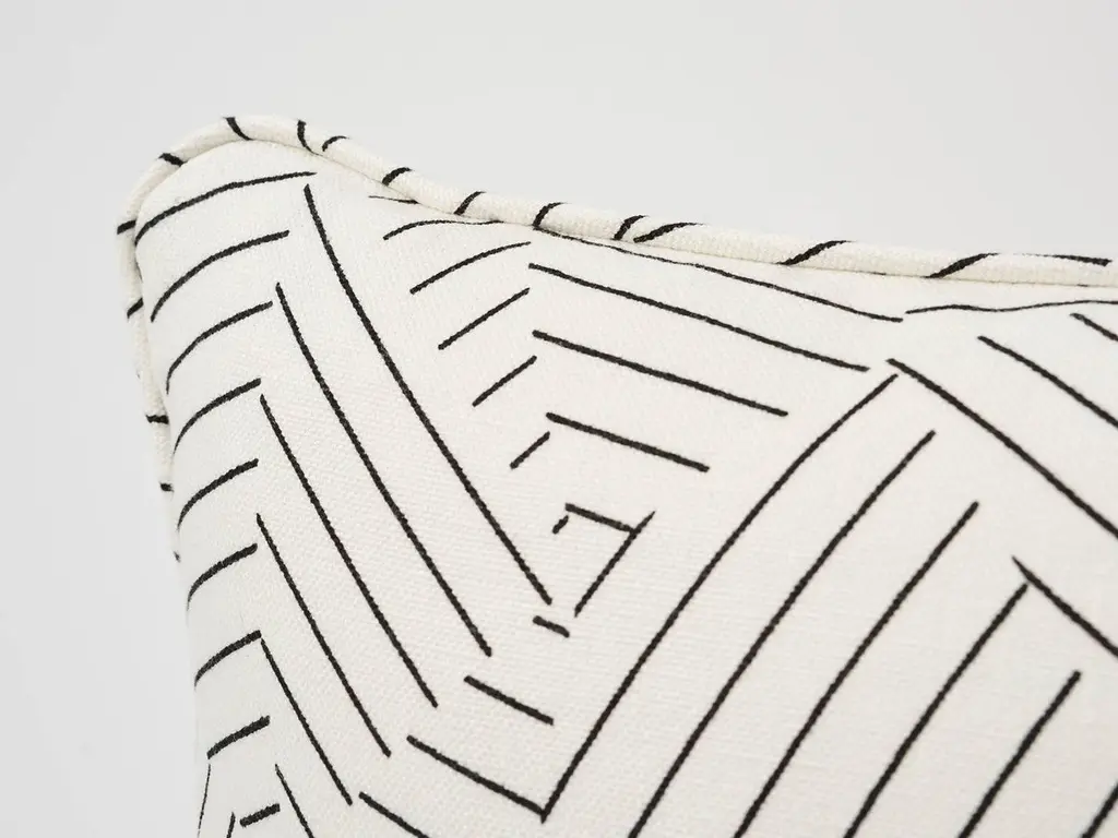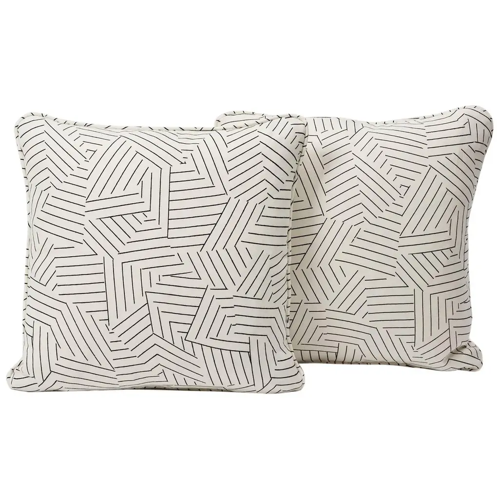 This geometric Deconstructed Stripe print, in collaboration with Miles Redd, is an homage to the legendary decorator Albert Hadley. The newly designed Schumacher stripe adds a modern and contemporary touch. Featured as a decorative accent, this is sure to elevate any interior or setting! If out of stock, lead-time is 15-20 business days approximately.Since Schumacher was founded in 1889, our family-owned company has been synonymous with style, taste, and innovation. A passion for luxury and an unwavering commitment to beauty are woven into everything we do. Pillows & Accessories Product Detail Pattern Name: Deconstructed Stripe Color: Black Self-Welt Fully Wrapped Pattern (pattern on both sides) Feather/Down Fill Insert Included Zipper Closure Content: 100% Linen Performance: Wyzenbeek 15,000 Measures 18". Sold individually.