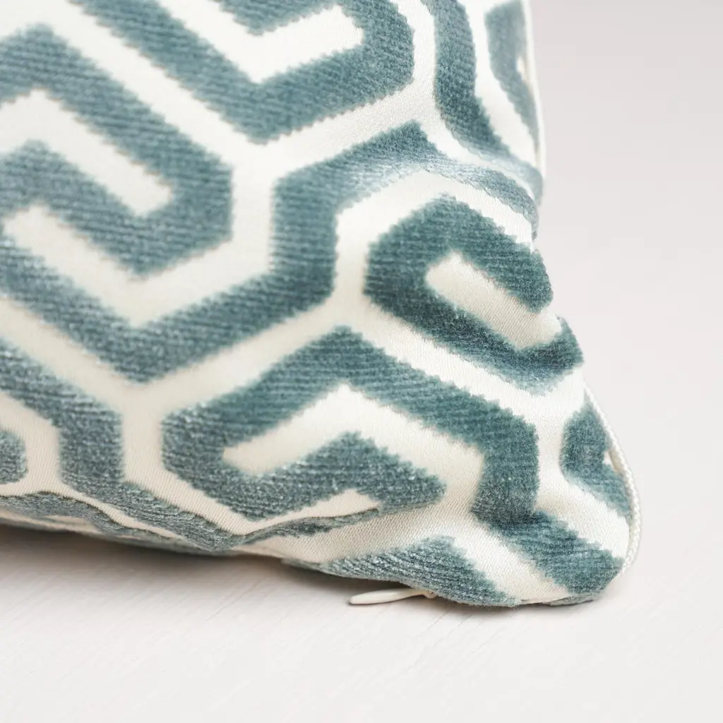 Schumacher Ming Fret Velvet 22" Pillow In Mineral