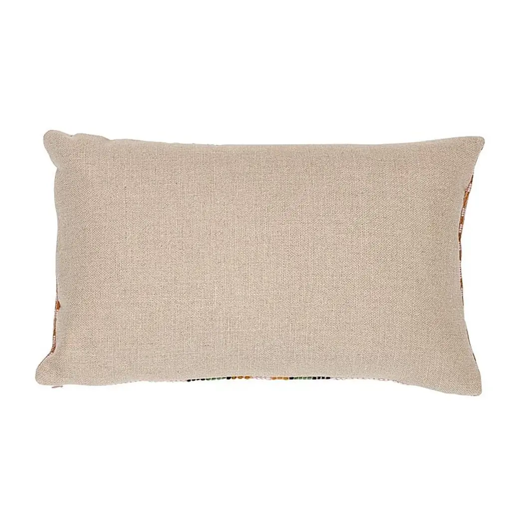This pillow features Mixco Fabric (Item# 79270) with a knife edge finish. This extraordinary brocade panel is hand-woven and -embroidered on a backstrap loom by master Maya women weavers in Guatemala. Back of pillow is Piet Performance Linen. Pillow includes a feather/down fill insert and hidden zipper closure. Please note, when out of stock, the lead time for this pillow is 12-14 weeks due to the hand woven nature of this fabric. If out of stock, lead-time is 15-20 business days approximately.