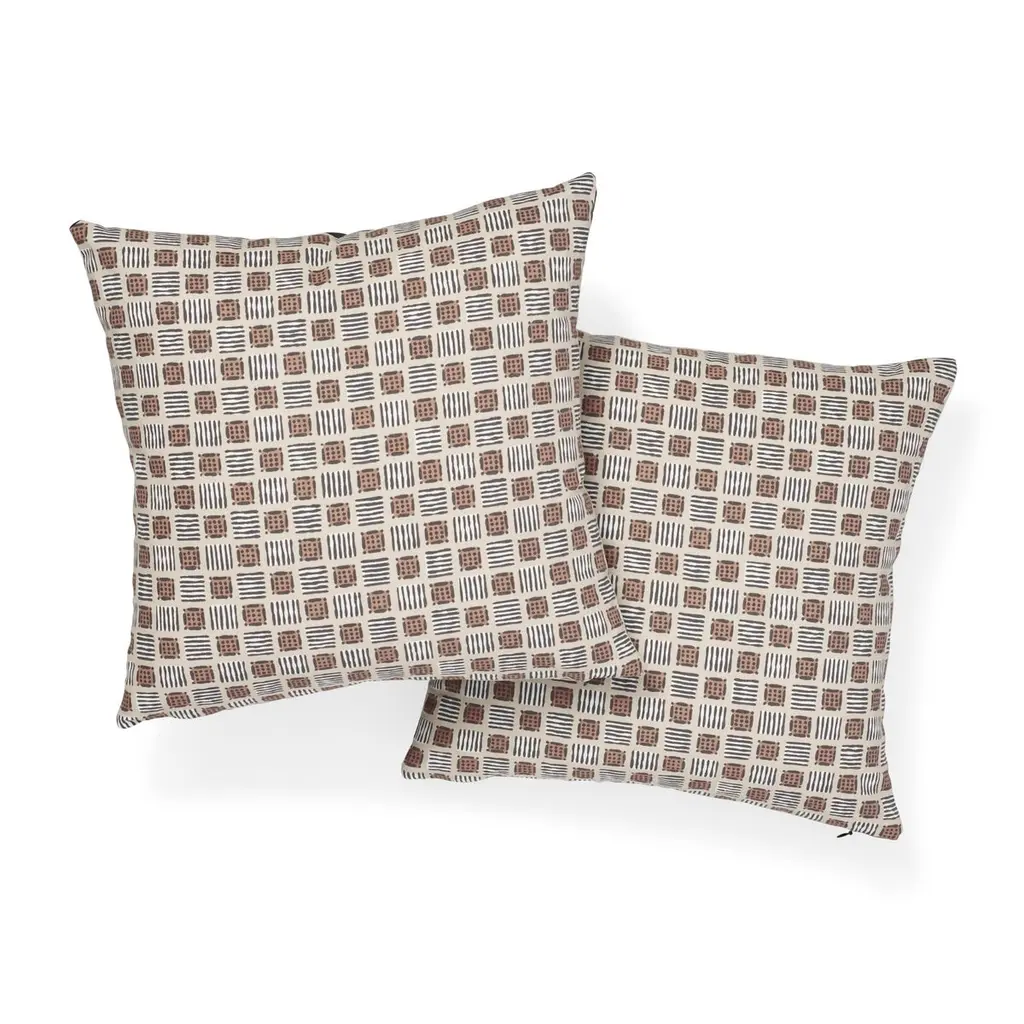 Schumacher Mottley Grid Wren Cotton Linen Pillow