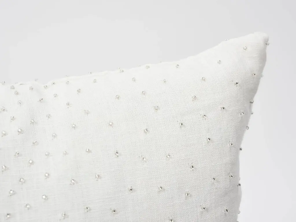 Schumacher Northern Lights Bead-Embellished White Two-Sided 18" Linen Pillow