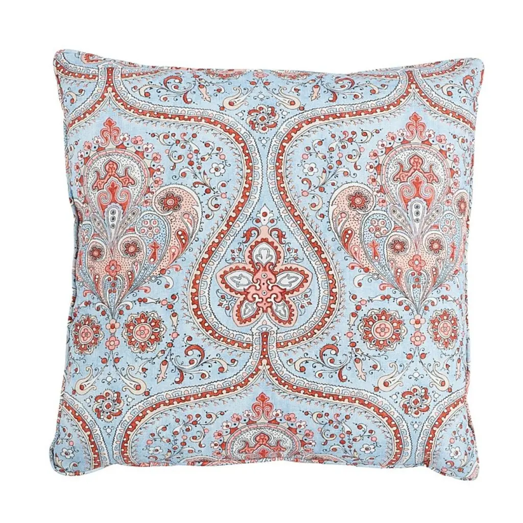 Schumacher Paisley Court 20" Pillow In Sky & Rose