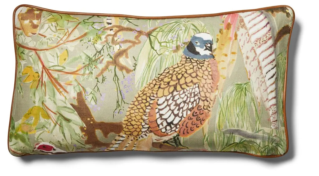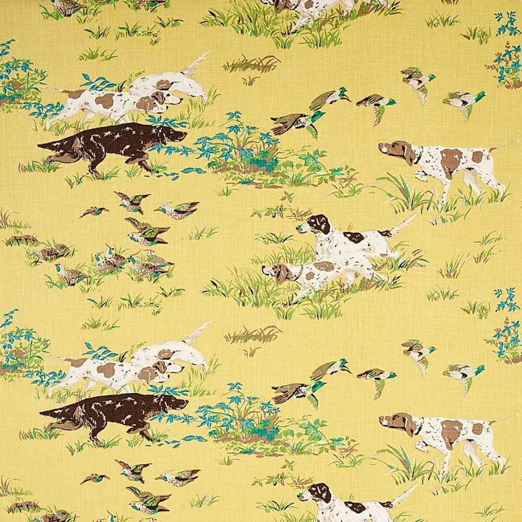 This pillow features Pointers with a self welt finish. With its field dogs and fluttering quail, Pointers is a classic hunting scene that speaks to lovers of canines and country life. A painterly print on a soft, linen ground, this fabric makes a wonderful companion for other patterns. Pillow includes a feather/down fill insert and hidden zipper closure.