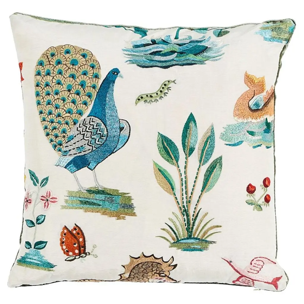 This pillow features Royal Silk Embroidery with a Knife Edge finish. In 1599, Nicholas Hilliard painted an iconic portrait of Queen Elizabeth I wearing an intricately embellished gown, a gift from Bess of Hardwick that demonstrated her unwavering support of the Queen. It is that gown that was the inspiration for Royal Silk Embroidery, the debut design in our Schumacher Masterpieces collection, which focuses on creating the most rarefied patterns in an effort to support age-old techniques. With its lavishly embroidered mythical sea creatures, exotic flora and fanciful birds—each painstakingly hand-stitched on a fine pearl-hued silk-linen ground—the fabric captures the elegance and eccentricity of the original dress. Remarkably, it takes a team of 25 artisans—including weavers, dyers, embroiderers and more—a total of 30 weeks to produce just 100 yards of this exquisite fabric that contains 58 distinct, hand-dyed colors. We think it’s still a design fit for a queen! Back of pillow is Venetian Silk Velvet. Pillow includes a feather/down fill insert and hidden zipper closure.If out of stock, lead-time is 15-20 business days approximately. Since Schumacher was founded in 1889, our family-owned company has been synonymous with style, taste, and innovation. A passion for luxury and an unwavering commitment to beauty are woven into everything we do.
