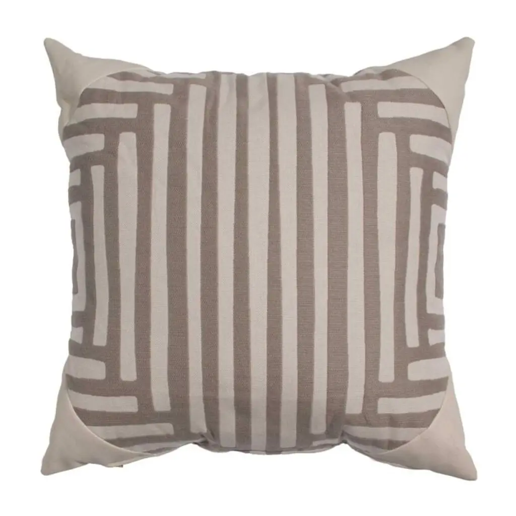 This pillow features Sangomar Applique with a self welt finish. Curvaceous, undulating lines of appliqué create a striking contrast with a chunky, solid twill ground for a laid-back look that still has a lot of drama. Pillow includes a feather/down fill insert and hidden zipper closure. Content 73% Linen, 17% Polyester, 5% Cotton, 5% Viscose Made with our Sangomar Applique fabric in Brown (Item 79952). If out of stock, lead-time is 15-20 business days approximately.