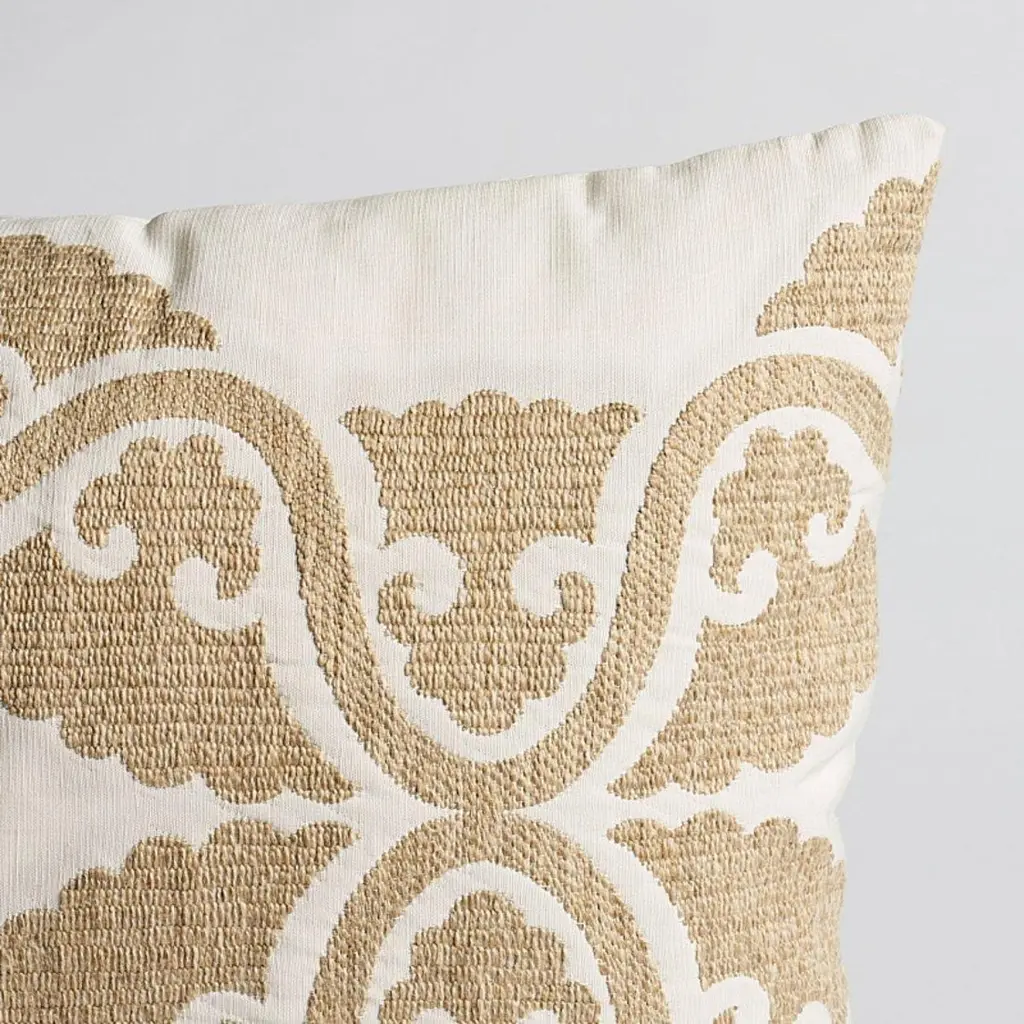This pillow features Silijan with a Knife Edge finish. Our Siljan pattern in ivory is a study in subtle contrasts. Oversized medallions woven in a soft textured yarn stand out against a ground with a fine, lovely file, resulting in a fabric with a humble formality. Pillow includes a feather/down fill insert and hidden zipper closure.If out of stock, lead-time is 15-20 business days approximately. Since Schumacher was founded in 1889, our family-owned company has been synonymous with style, taste, and innovation. A passion for luxury and an unwavering commitment to beauty are woven into everything we do.