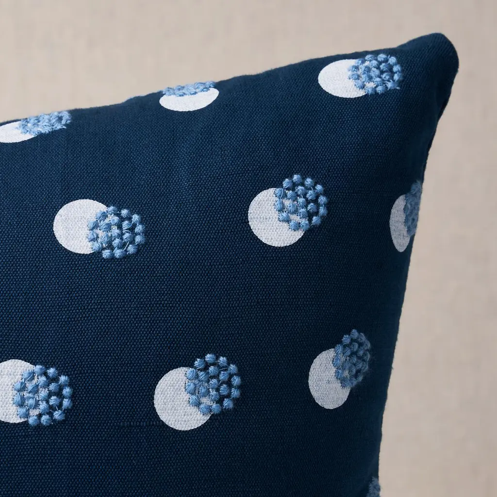 This pillow features Taylor Embroidery with a knife edge finish. Taylor Embroidery in blue-on-ivory artfully combines a few simple elements—bursts of offset French knots embroidered over a field of hand-screened dots—for a linen fabric that’s visually interesting and super-sophisticated. Pillow includes a feather/down fill insert and hidden zipper closure.If out of stock, lead-time is 15-20 business days approximately.Since Schumacher was founded in 1889, our family-owned company has been synonymous with style, taste, and innovation. A passion for luxury and an unwavering commitment to beauty are woven into everything we do. Pillows and accessories Product detail Pattern name: Albizia Embroidery Color: Blue & Green Hidden zipper closure Knife Edge Finish Feather/down fill insert included Content: 40% Linen, 31% Cotton, 29% Viscose Performance: N/A Pillow measures 18" x 18".