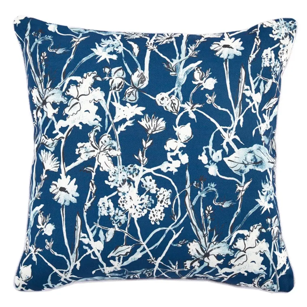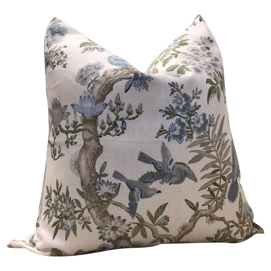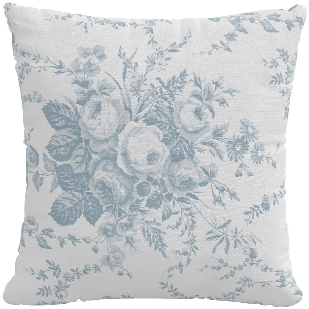 Schumacher Toile De Fleurs 22" Pillow In Delft