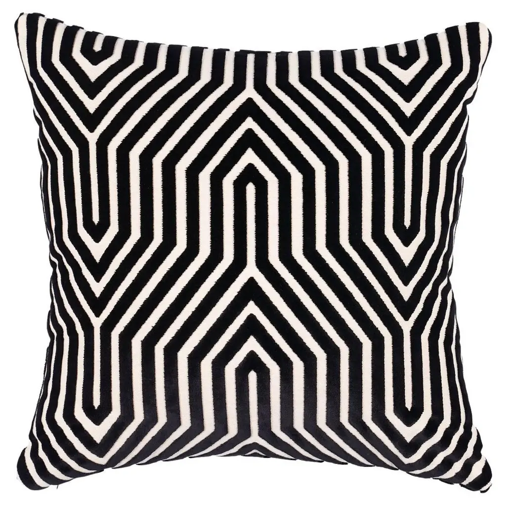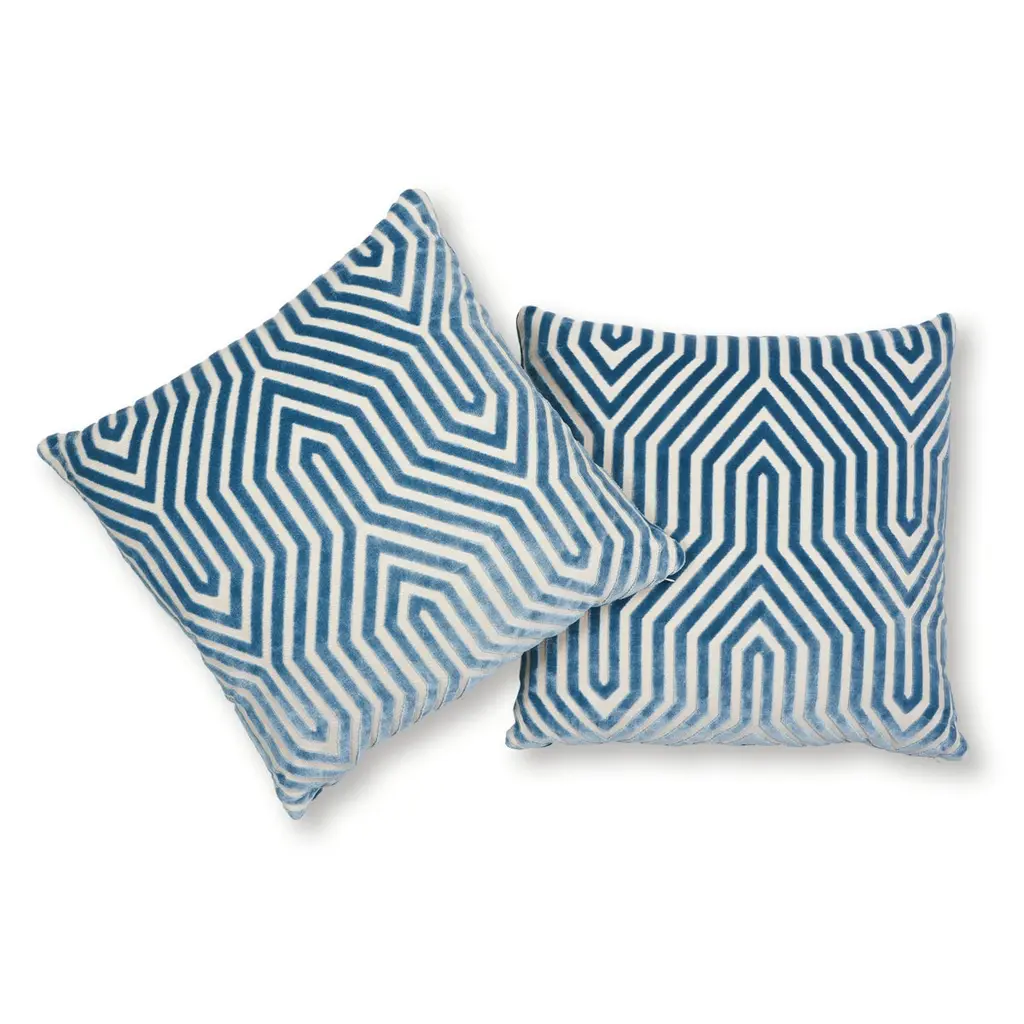 This pillow features Tortola with a knife edge finish. Inspired by basket designs, this concentric diamond pattern is woven from Dralon acrylic yarns. Textured and extremely durable, it is suitable for both indoor or outdoor settings. Pillow includes a polyfill insert and hidden zipper closure. Since Schumacher was founded in 1889, our family-owned company has been synonymous with style, taste, and innovation. A passion for luxury and an unwavering commitment to beauty are woven into everything we do. Pillows and accessories Product Detail Pattern Name: Vanderbilt Velvet Color: Marine Hidden zipper closure Knife edge finish Feather/down fill insert included Content: 87% Viscose, 13% Cotton Performance: Martindale 40,000 Pillow measures 22" x 22".