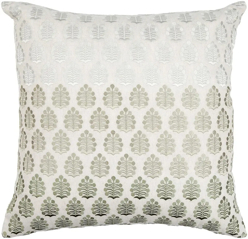 This pillow features Woodperry by Veere Grenney for Schumacher with a self welt finish. Classic yet modern, Woodperry is an updated take on a botanical stripe. Woven in England, the natural linen ground gives this artful, leafy pattern subtlety and depth. Pillow includes a feather/down fill insert and hidden zip closure.