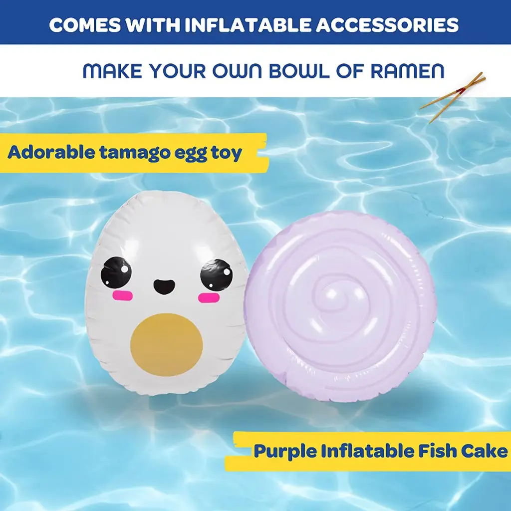 This 67-inch kiddie inflatable above ground pool comes in a unique and run ramen design! This is a summer must have and will provide everyone with our of fun and entertainment right in the comfort of your own home! It features a ramen design along the bottom of the pool with a tamago egg and fish cake inflatable!
