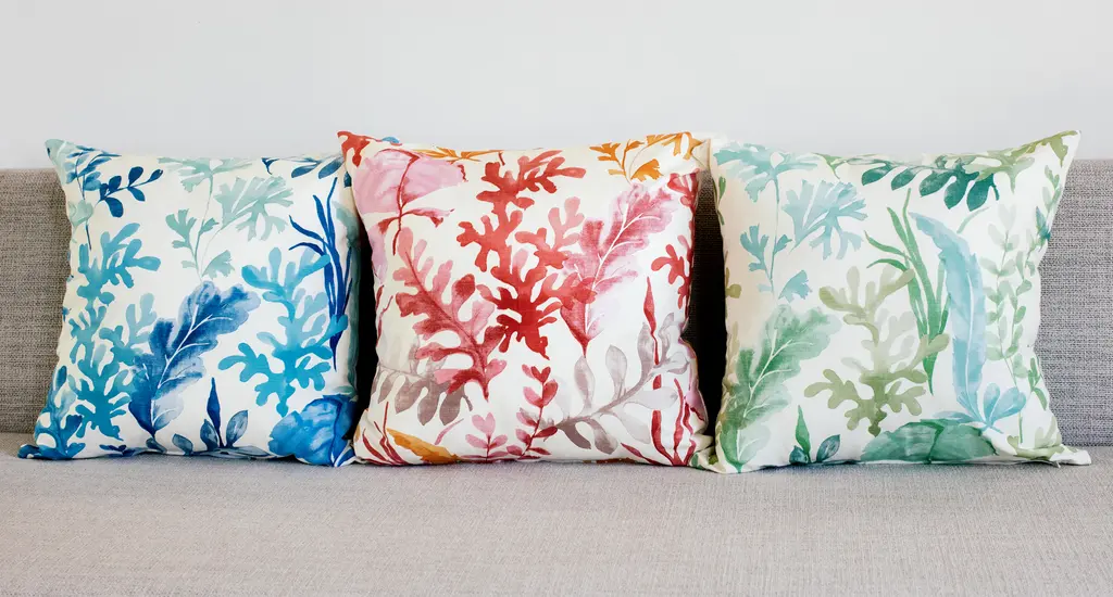 The Sea Garden pillow features underwater plants in beautiful pastel greens and blues. As the pattern does not look overly aquatic, this pillow is a great abstract home decor accent that will work in a variety of interior spaces. Size: 20"x20" Square Fabric: 100% Cotton Same fabric front and back Knife edge seems Color matched, hidden zipper closure Handwash, cold water Made in Canada: Designed and made in Pillow Decor's Vancouver workroom.