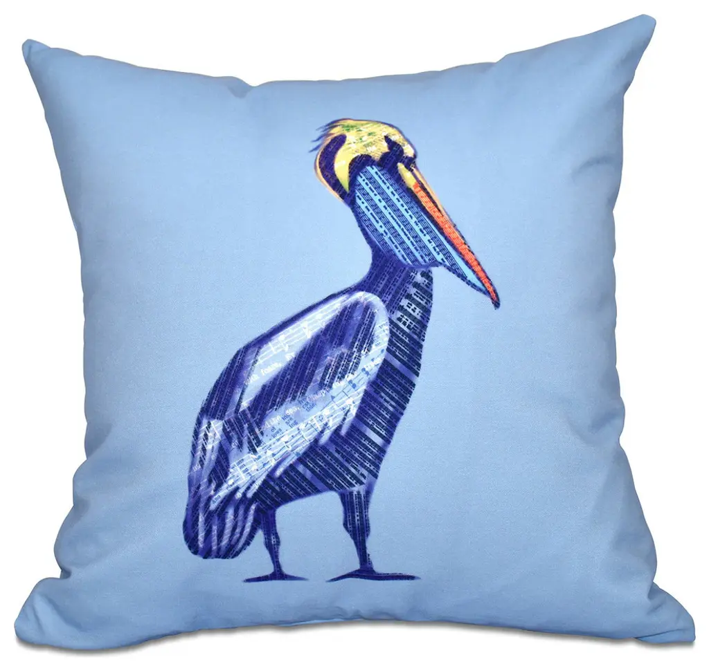 Sea Music, Animal Print Pillow, Blue, 16"x16"