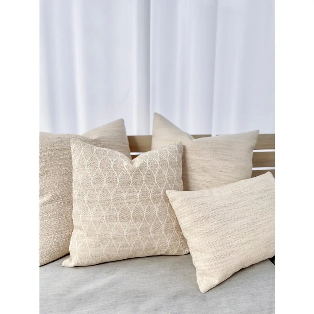 Introducing the Seaside Smooth Beige Indoor Outdoor Pillow, a soft and durable Acrylic fabric made with a unique technology that withstands tough weather conditions for many years to come.The Anaya Pure Air Collection features Indoor and Outdoor Pillows which are cut and sewn in our Miami, FL facility.PureAir Technology: Very soft Acrylic fabric suitable for Indoor or Outdoor use, UV-resistant, Quick-dry, 5-year Warranty. Color: Beige.Pattern: Textured pattern of shades of Beige.Size: 14"x20", 20"x20", 24"x24"Fabric: Soft 100% Solution Dyed Acrylic. Insert: 100% Polyester.Wash Instructions: Spot Clean or Machine Wash on Delicate using Cold Water only, Hang to Dry.Closure: Zipper on bottom edge.Made in the USA.