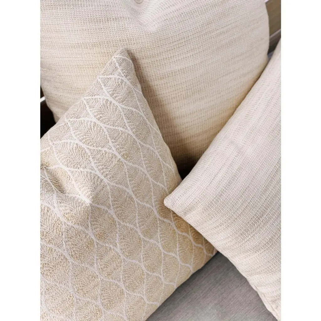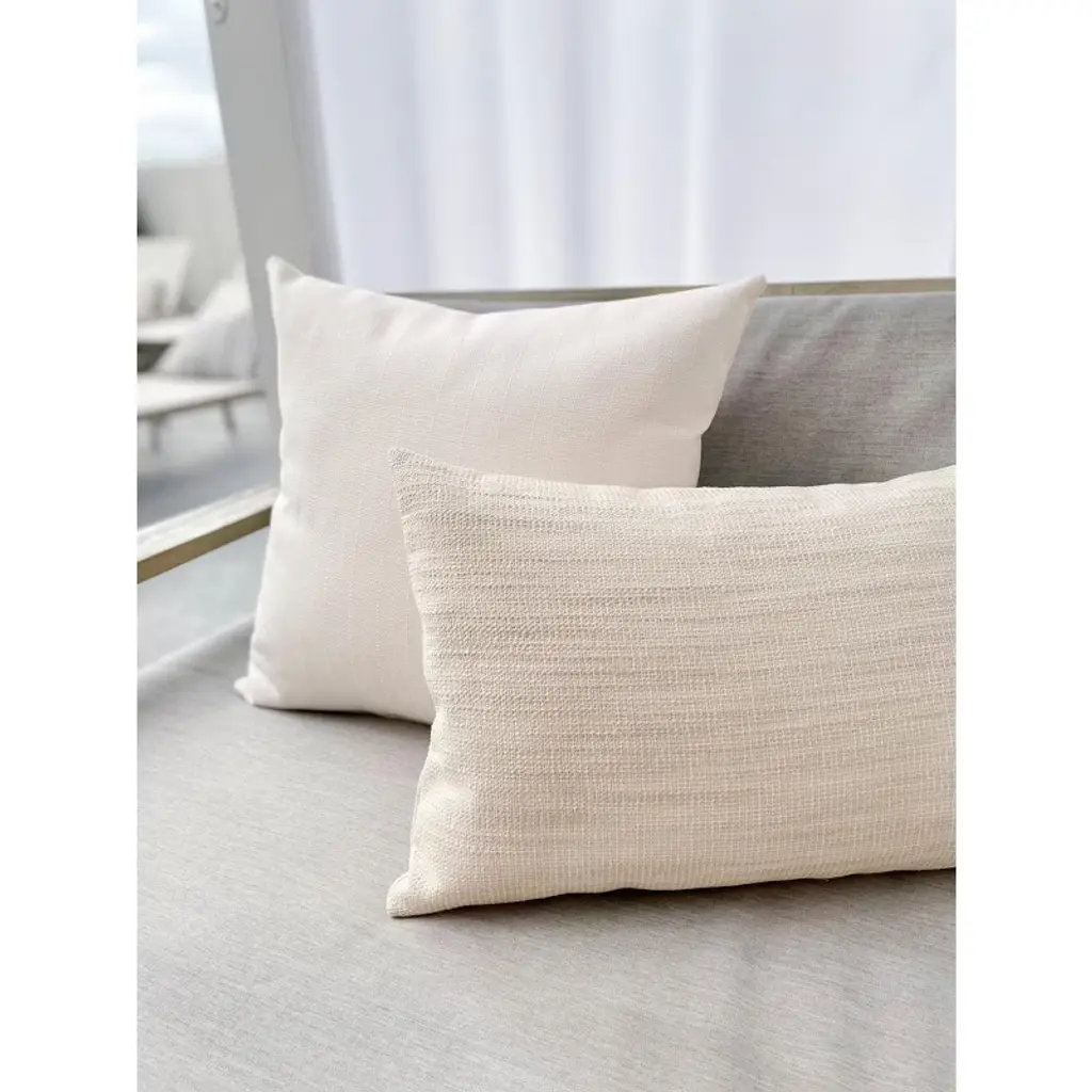 Introducing the Seaside Smooth Beige Indoor Outdoor Pillow, a soft and durable Acrylic fabric made with a unique technology that withstands tough weather conditions for many years to come.The Anaya Pure Air Collection features Indoor and Outdoor Pillows which are cut and sewn in our Miami, FL facility.PureAir Technology: Very soft Acrylic fabric suitable for Indoor or Outdoor use, UV-resistant, Quick-dry, 5-year Warranty. Color: Beige.Pattern: Textured pattern of shades of Beige.Size: 14"x20", 20"x20", 24"x24"Fabric: Soft 100% Solution Dyed Acrylic. Insert: 100% Polyester.Wash Instructions: Spot Clean or Machine Wash on Delicate using Cold Water only, Hang to Dry.Closure: Zipper on bottom edge.Made in the USA.