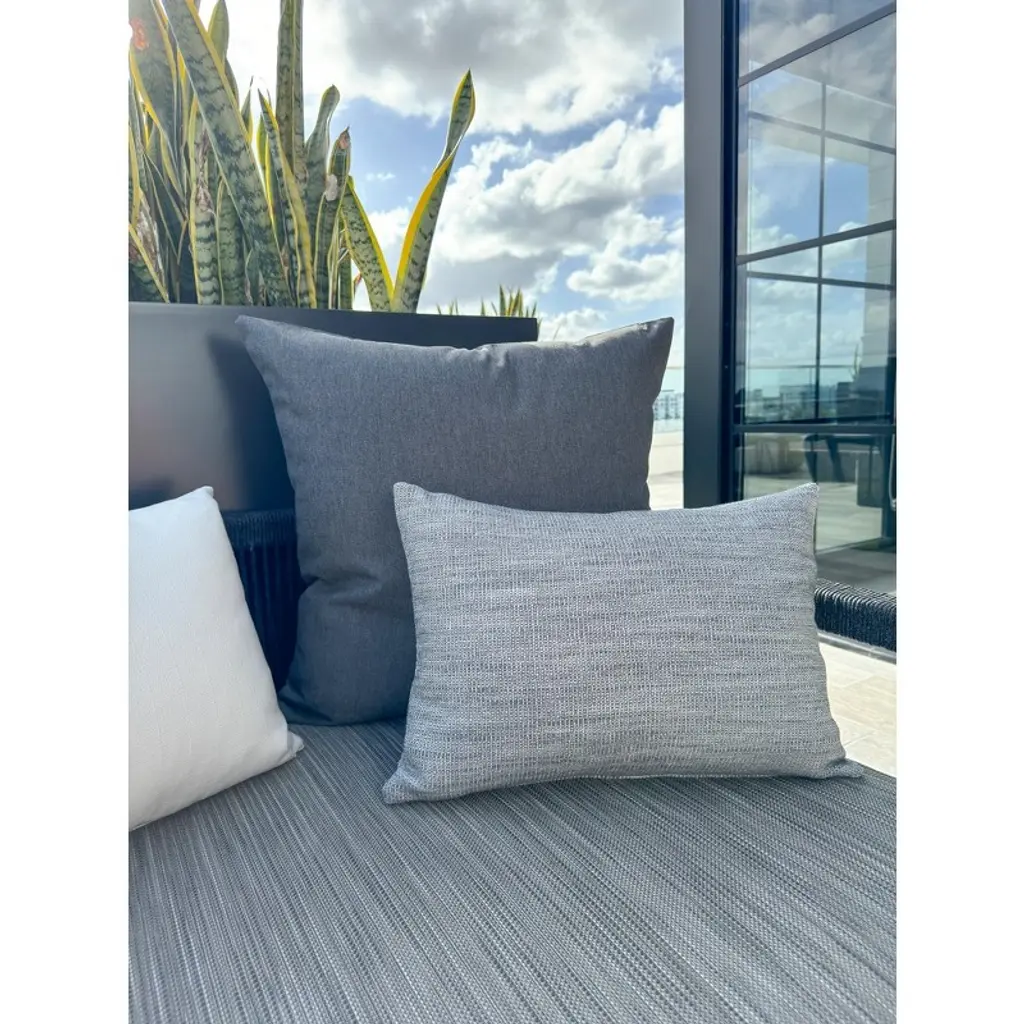 Introducing the Seaside Smooth Grey Indoor Outdoor Pillow, a soft and durable Acrylic fabric made with a unique technology that withstands tough weather conditions for many years to come.The Anaya Pure Air Collection features Indoor and Outdoor Pillows which are cut and sewn in our Miami, FL facility.PureAir Technology: Very soft Acrylic fabric suitable for Indoor or Outdoor use, UV-resistant, Quick-dry, 5-year Warranty. Color: Grey.Size: 14"x20", 20"x20", 24"x24"Fabric: Soft 100% Solution Dyed Acrylic. Insert: 100% Polyester.Wash Instructions: Spot Clean or Machine Wash on Delicate using Cold Water only, Hang to Dry.Closure: Zipper on bottom edge.Made in the USA.