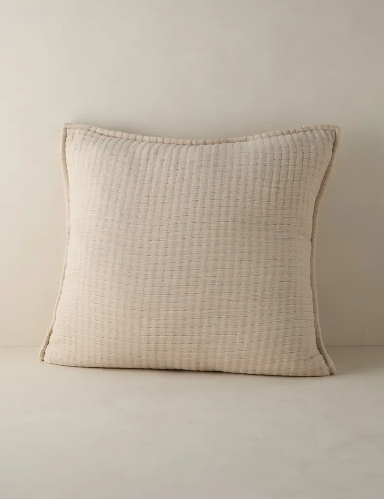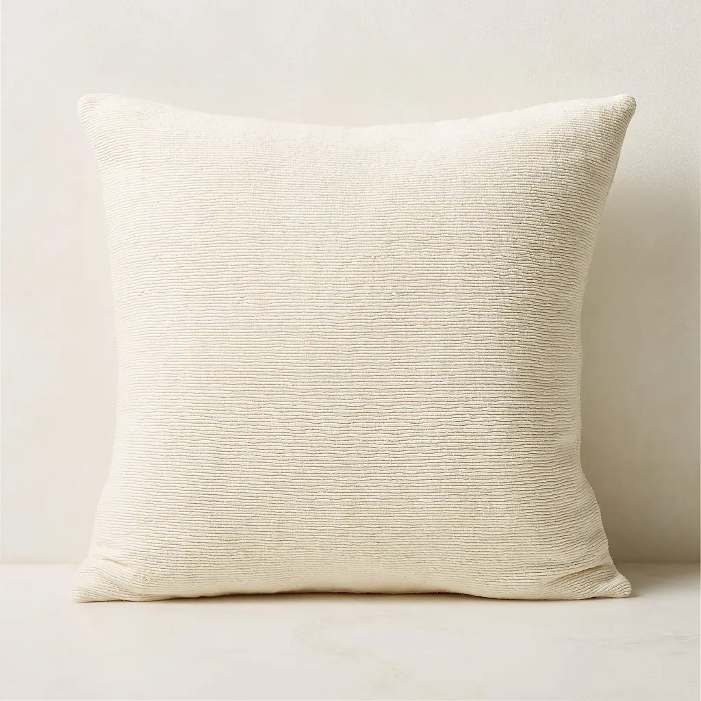 Silk threads are handwoven on a loom to create this rich, textured throw pillow. Bleached raw silk wraps around the entire pillow, front and back, for a luxe feel. CB2 pillows include a pillow insert in your choice of feather down or down alternative. CB2 exclusive.