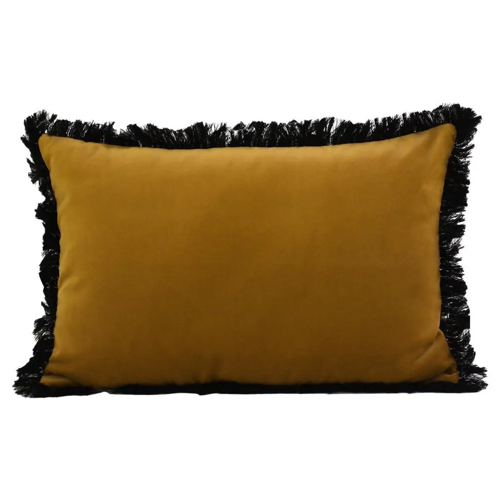 Selenita Yellow Curry Fringed Velvet Deluxe Handmade Decorative Cushion
