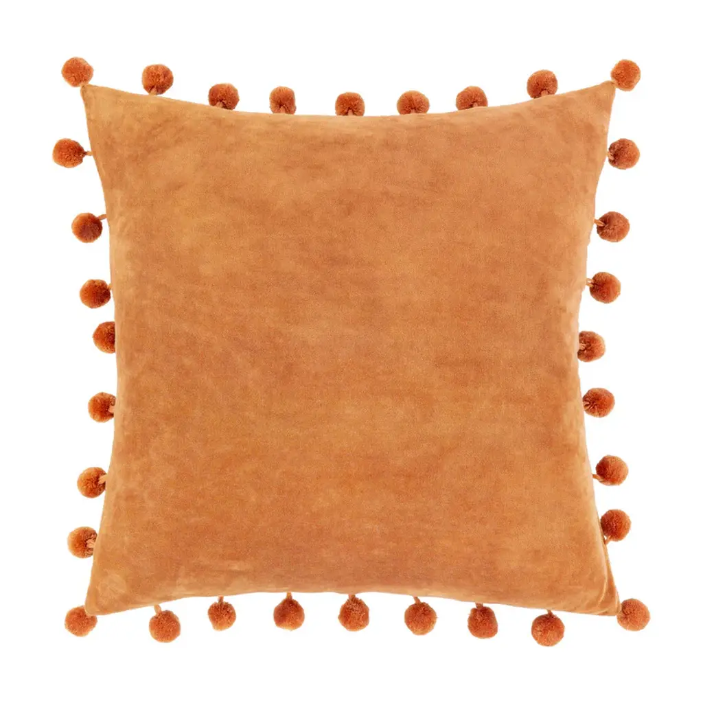 Add a pop of texture to your sofa or sectional with the Serengeti Square Pillow from Surya. Featuring a pom-pom trim, this plush pillow features a velvet front and cotton back for premium softness and comfort. Layer with coordinating pillows of various sizes and shapes for a dynamic display that is equal parts chic and inviting. Highlights