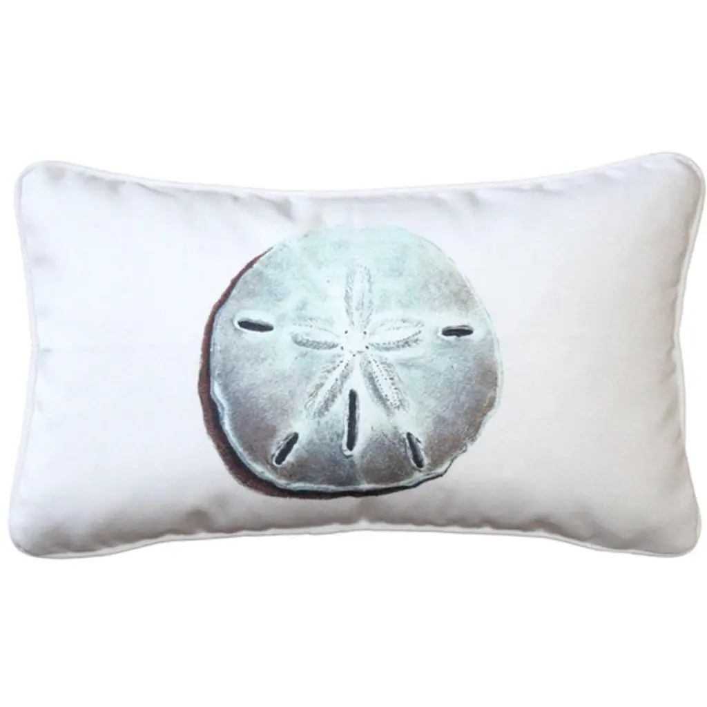 Ideal as headrests or simply decorative pieces for cockpit lounges or pool areas, this set of two cushions is distinguished by a water-repellent, beige fabric upholstery that envelops plush inner padding. Contrasting stitching details enliven the piece, combined with a vibrant reproduction of a coral accenting the top. Featuring Velcro closure and washable, it is equipped with a ring that allows for safe use on boats.