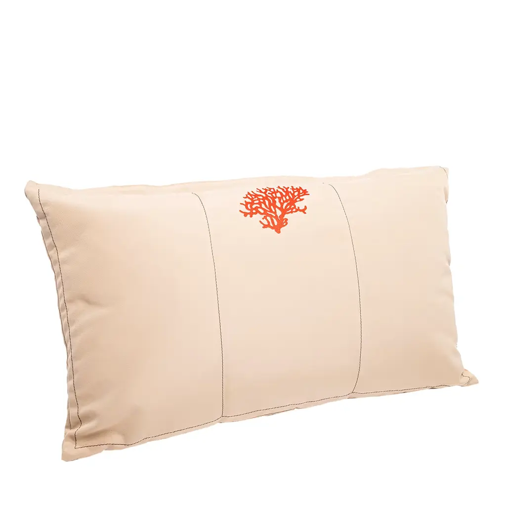 This luminous set of two decorative cushions makes for a clever addition to coastal living spaces and boats, due to the presence of a hide-away ring that allows to tie it to the boat for safe use even during navigation. Washable and featuring a practical Velcro closure, it features plush padding wrapped in water-resistant, white fabric that is delicately adorned with a light-hued, stylized coral.