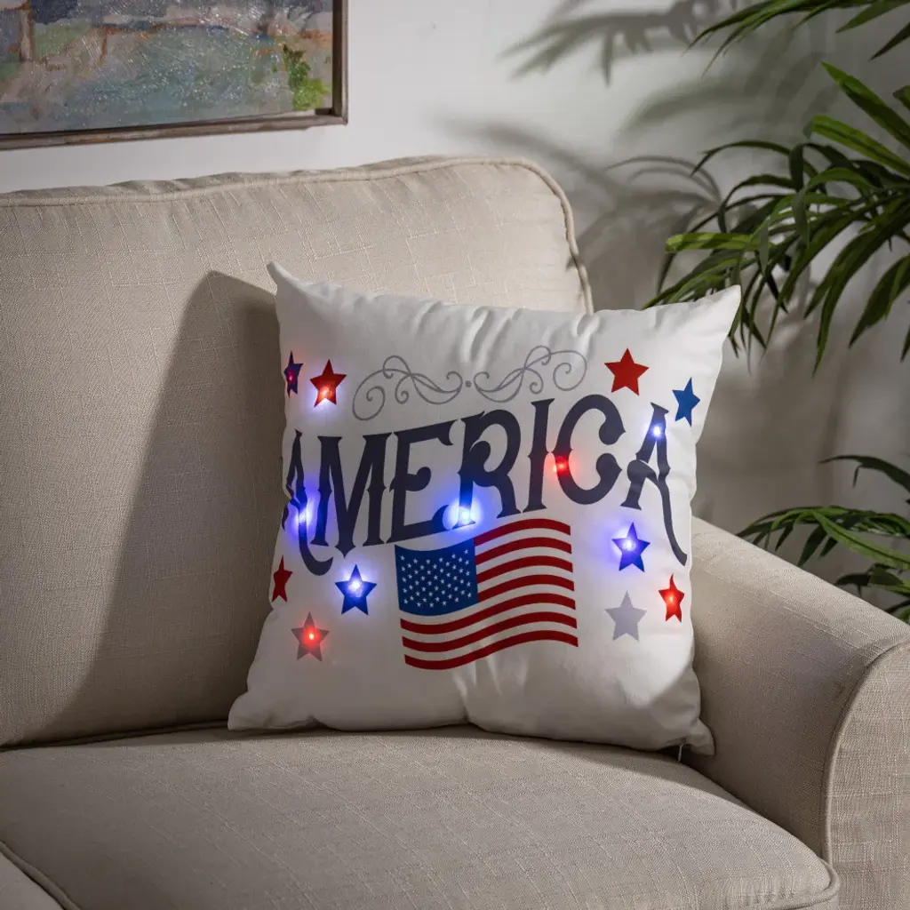 Set Of 3, 16" Battery Operated Americana Throw Pillows
