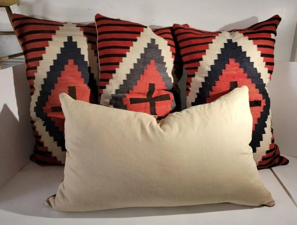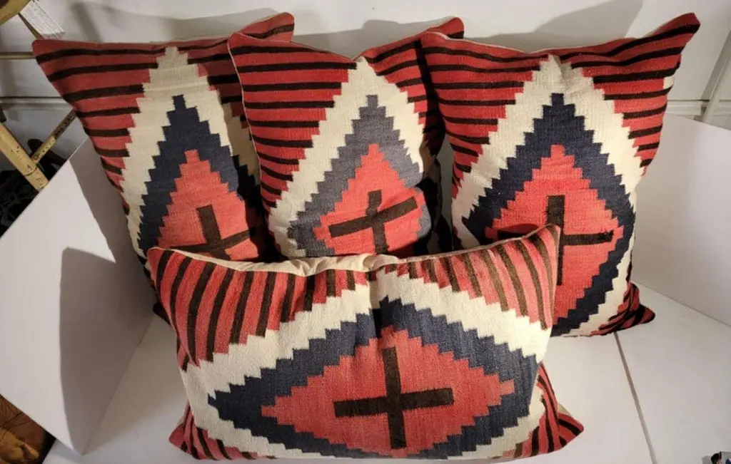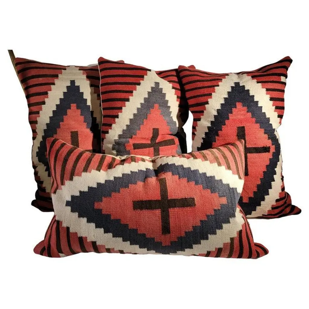 Set Of Four Large Navajo Indian Pillows With Cross Pattern