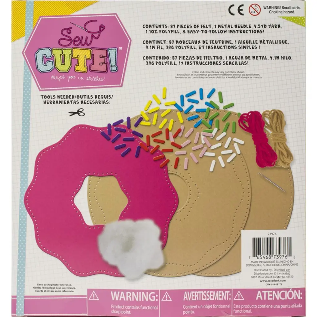 Make a fun pillow with the Sew Cute! kit. Package includes felt, needle, polyfill, and easy to follow directions. Additional tools are needed to complete the project. Recommended ages 8 years and up. WARNING: Choking Hazard. Not suitable for children under 3 years. Imported.