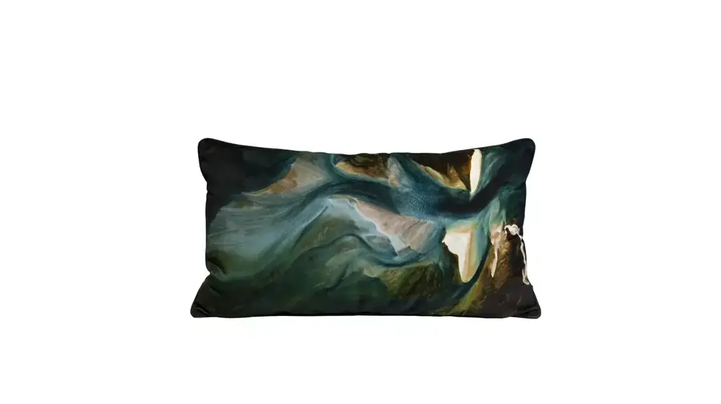 In collaboration with photographer Yann Arthus-Bertrand, Roche Bobois offers a collection of three cushions depicting photos taken from the sky. The Shark Bay cushion represents a view of the sandbanks in Haridon Bight, Peron Peninsula, Australia.