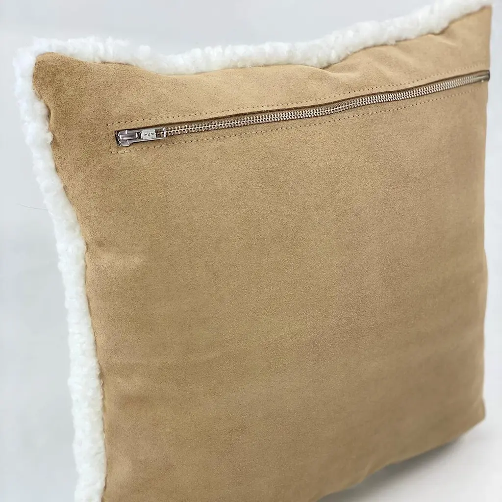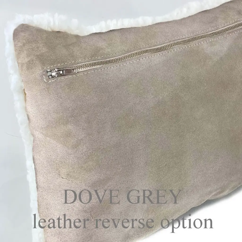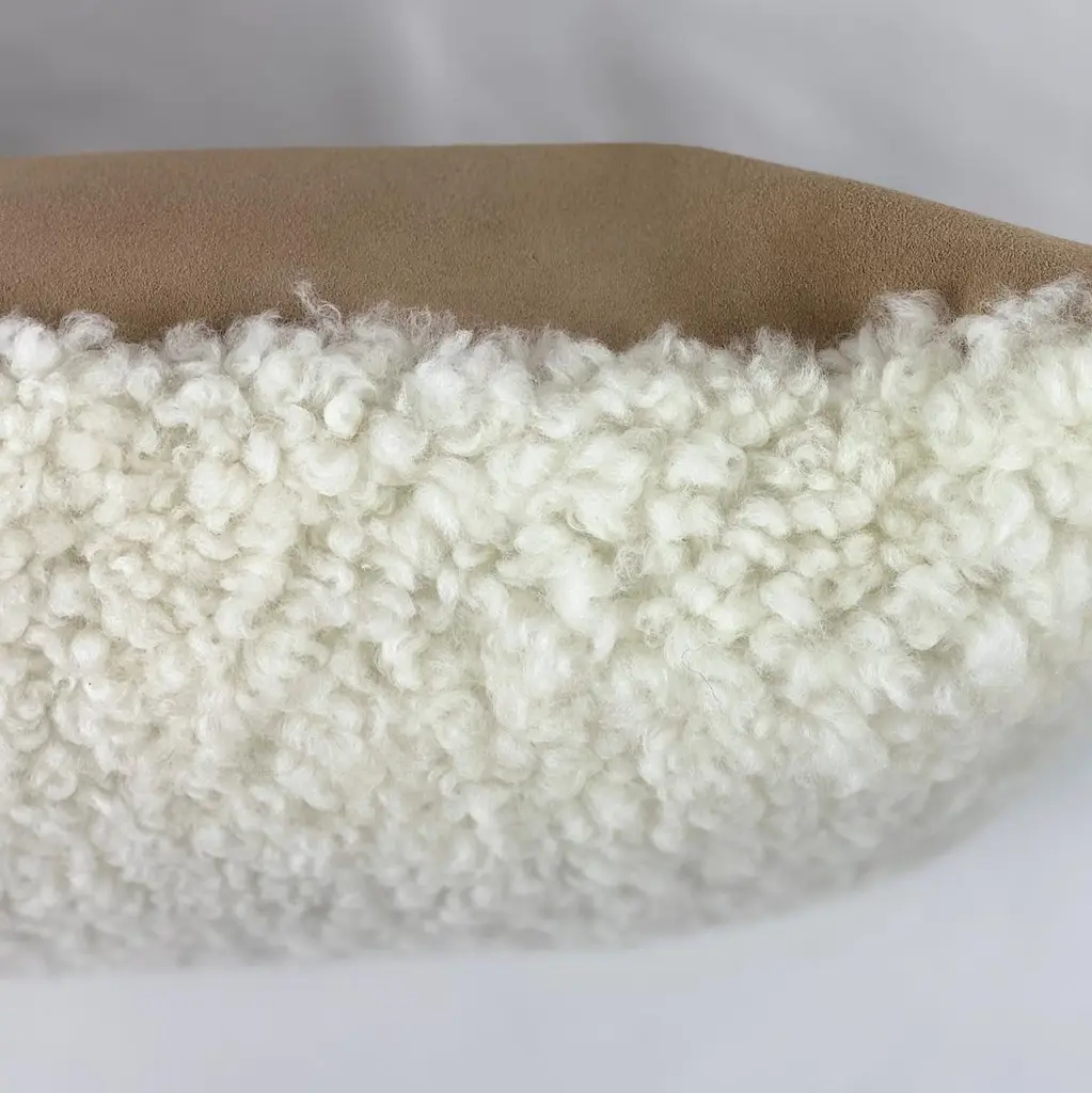 Add a refreshing touch to your interior with this white shearling sheepskin pillow. The sheepskin wool features a curly short wool pile that will add inviting and charming textures to a room. Part of the boucle collection, this shearling pillow translates contemporary Nordic design while expressing natural and sustainable designer living.Designed and individually hand-crafted in Australia using ethically sourced natural by- product and high quality Australian shearling sheepskin. The single sided shearling pillow front is complimented with a genuine suede leather reverse available in two color options: suede tan or suede dove grey. The 18x18" square pillow is fitted with a cozy 100% feather insert, to complete the 100% natural and sustainable design.Designer, Emily Barbara is all about living with 100% natural products derived from sustainable animal skins, leathers and sheepskin. The shearling cushion is available in a range of shapes, sizes and colors. As makers and artisans in sheepskin home decor this shearling sheepskin can be custom made into rugs, pillows and bench seats to suit your decor and project needs. Please contact us for further details. Features:Australian shearling sheepskinColour: White VanillaFront sided sheepskinGenuine suede leather reverse / two colour optionTwo color option reverseSize: 45 x 45cm / 18x18"Wool pile: 12-14mm (up to 1/2" pile)Made in Australia Feather cushion insert includedNatural product:It needs to be celebrated that this shearling pillow is made from 100% natural product. Variation between each pillow will occur in the wool pile texture and colour tones. The reverse is genuine suede leather, natural markings and leather imperfections are classed as natural characteristics.Product care for your Shearling Pillow:Keep away from direct sunlightProfessional dry clean onlyDo not wash or submerge into waterShake out often to remove dust or give light vacuumSpot clean only with gentle wool detergent.Do not brush.Professional dry clean only.