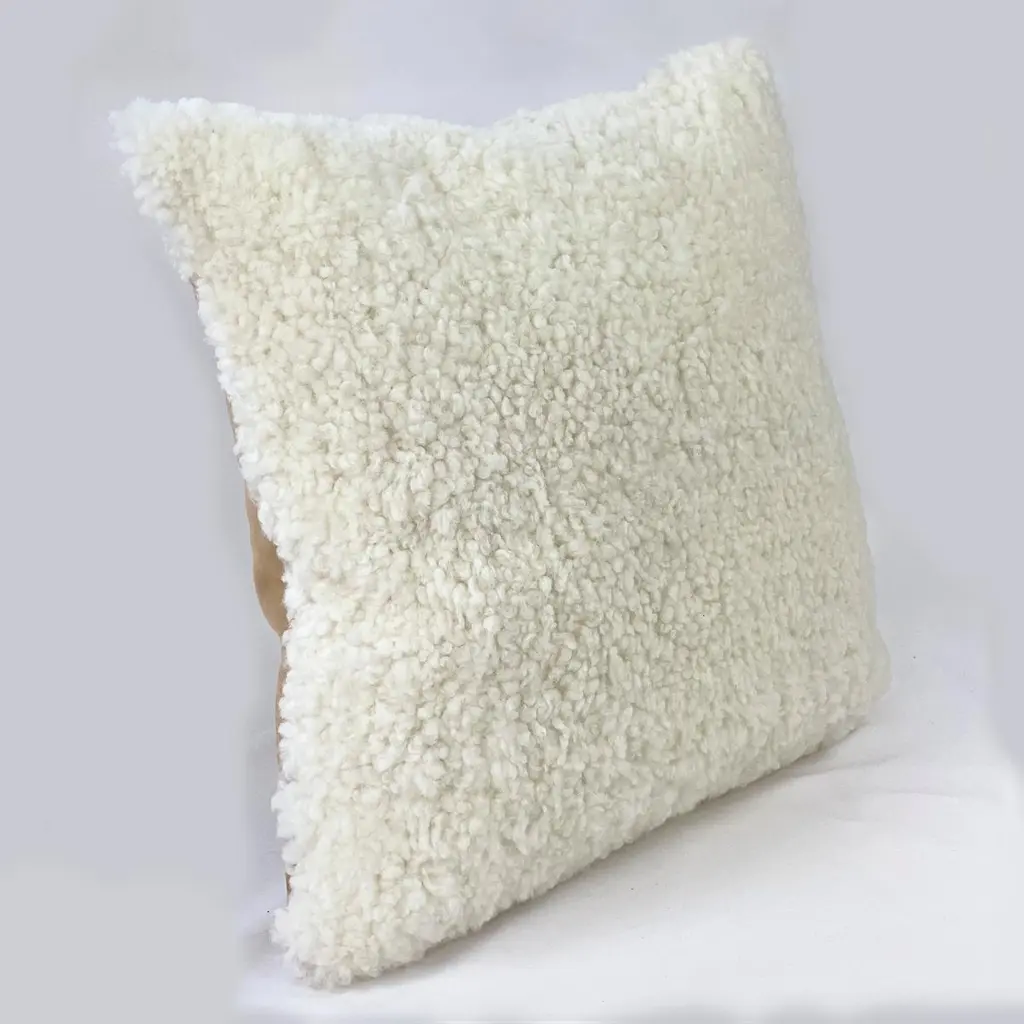 Shearling Pillow, White Sheepskin Square 18x18" 40x40cm