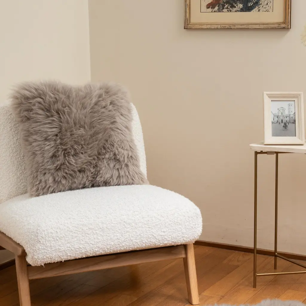 This cushion is handcrafted in our Atelier in Italy using only the best materials, starting from real Shearling Sheepskin fur. Its particular look allows this piece to both stand out or blend in your spaces, while keeping its nature of a soft and useful pillow.Crafted as a design piece, this cushion brings together style, comfort, and sustainability: Sheepskin is one of the most sustainable materials on the planet, coming from a 0% waste food chain industry.Cover and filling are 100% Made in Italy from our skilled artisans, preserving the old culture of high end manufacturing and finishing, with great attention to the details.All the distinctive features of each single piece, made from natural materials, are unique and unrepeatable. Differences in colour, uniformity, dimension, height and a slight loss of hair are intrinsic characteristics of the material and are an indication of the naturalness and exclusive nature of the product. For this reasons every piece will be unique.We only use the best quality natural materials, sourced following EU regulations and that does NOT require CITES requirements.Features40 cm x 40 cm100% Shearling SheepskinLining: 100% Polyester Suede EffectPadding: 100% Fireproof Polyester Flake with 100% Cotton Fabric LiningRemovable CoverMade in Italy