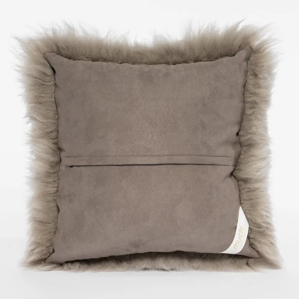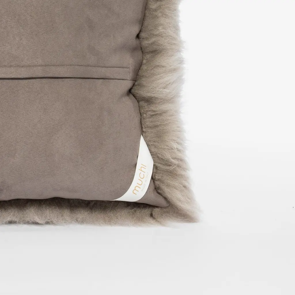 Shearling Sheepskin Stone Grey Cushion By Muchi Decor, Made In Italy
