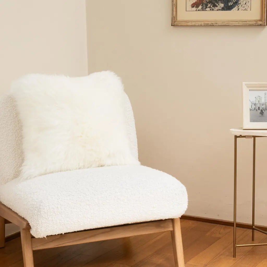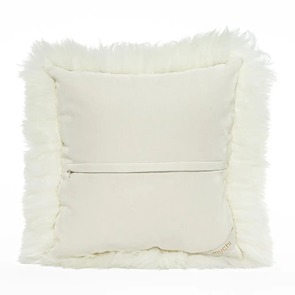 Shearling Sheepskin White Cushion By Muchi Decor, Made In Italy